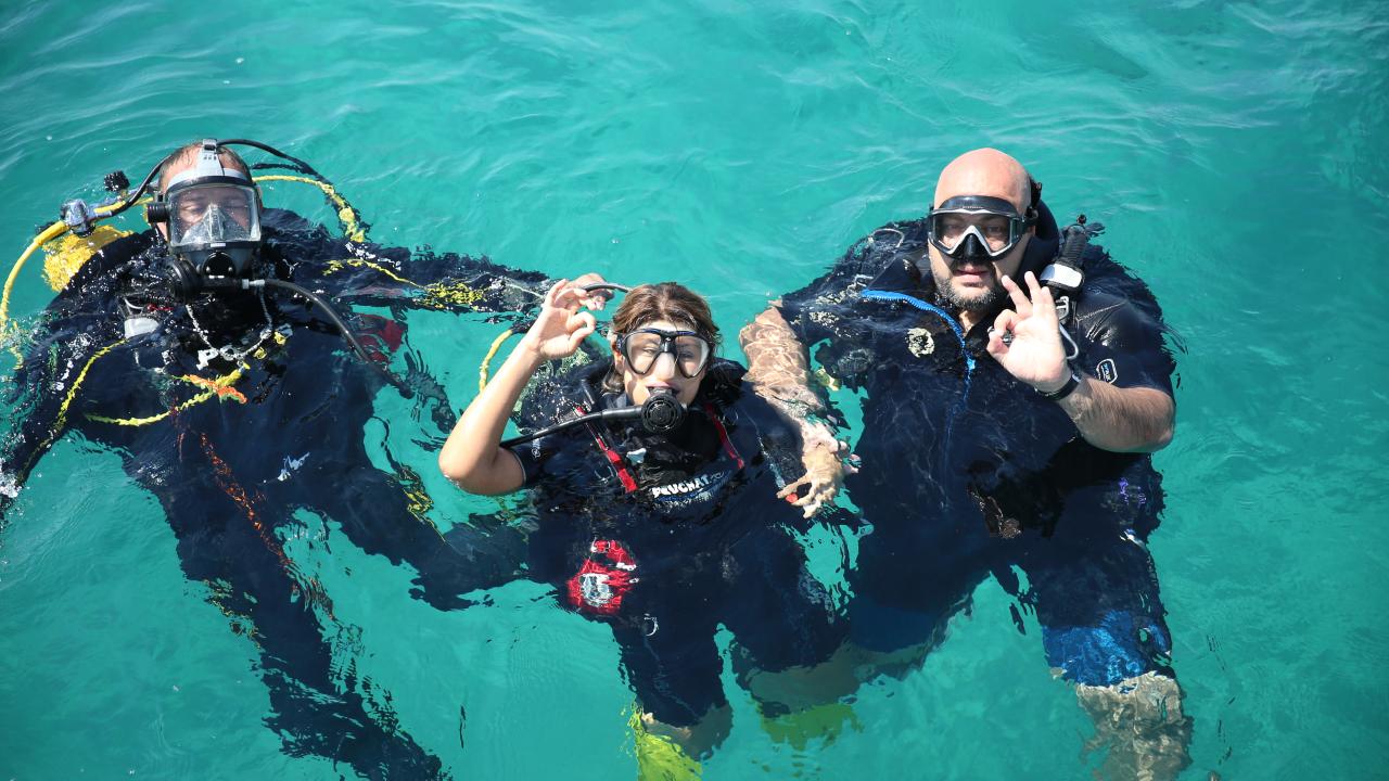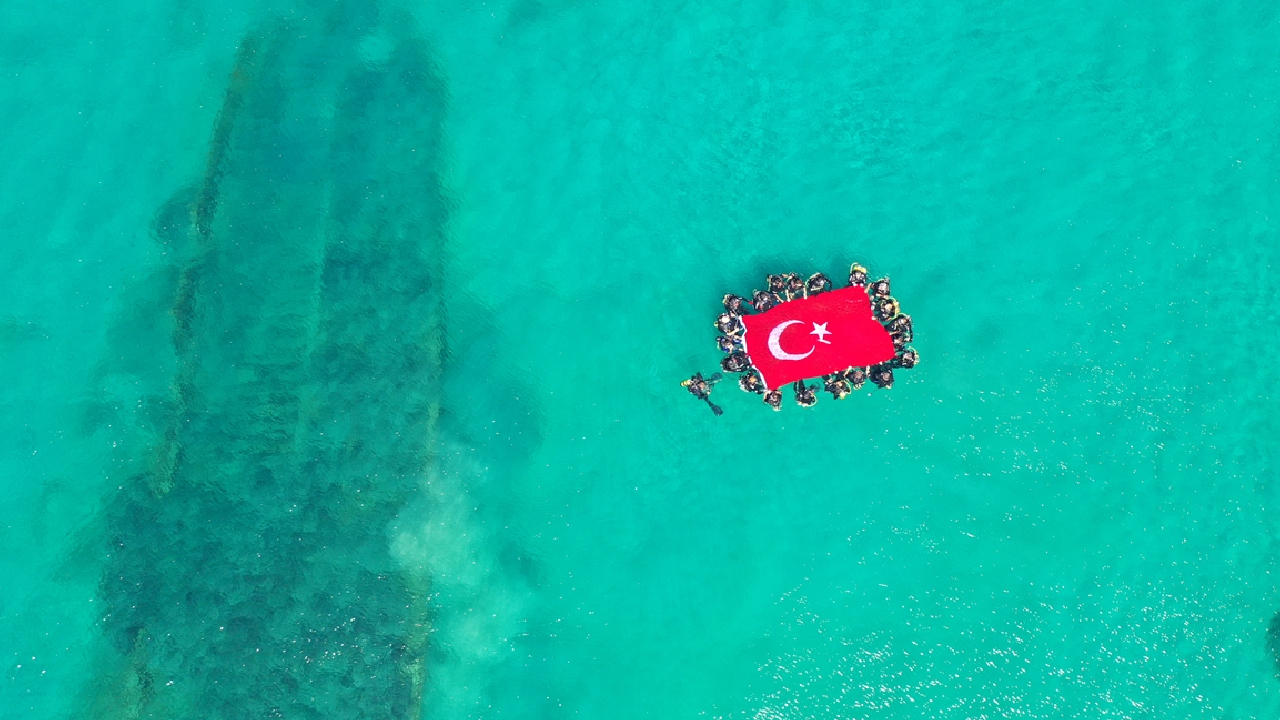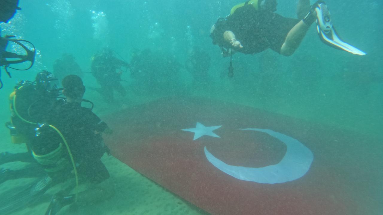Engelli dalıcılar ve kurbağa adamlar, 30 Ağustos Zafer Bayramı dolayısıyla gerçekleştirdikleri "zafer dalışı"nın ardından denizde Türk bayrağı açtı.