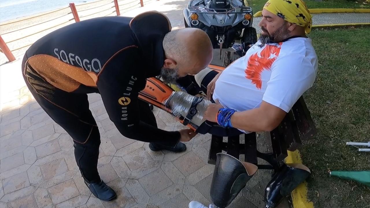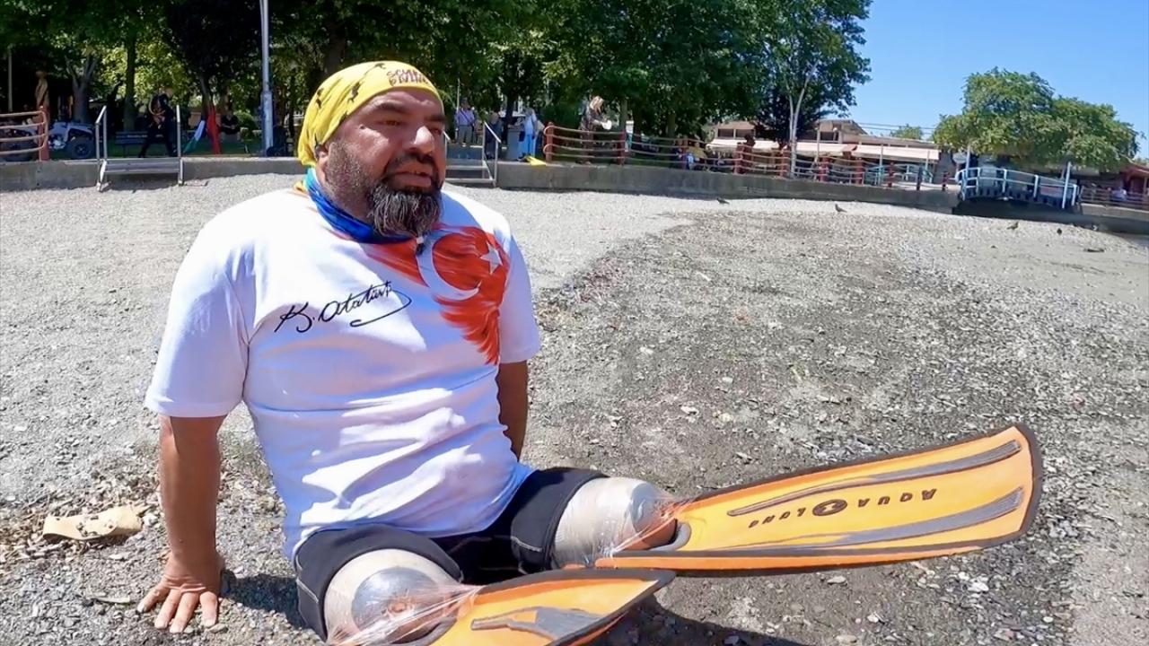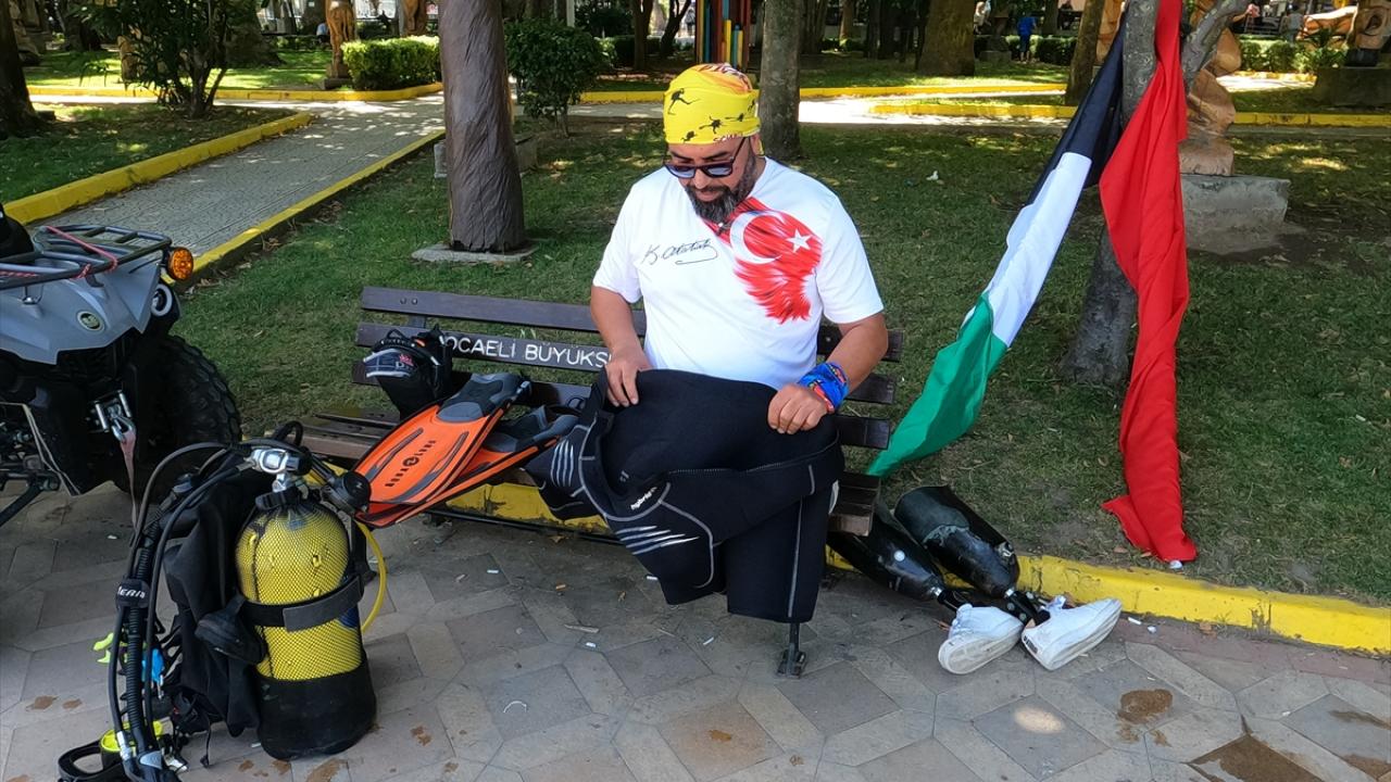 Koçak, yaklaşık 40 dakika süren dalışla İsrail`in Gazze`deki saldırılarına su altından dikkati çekti.