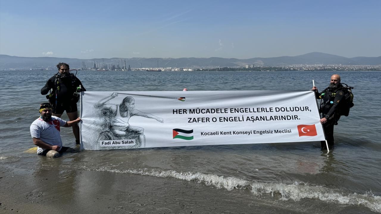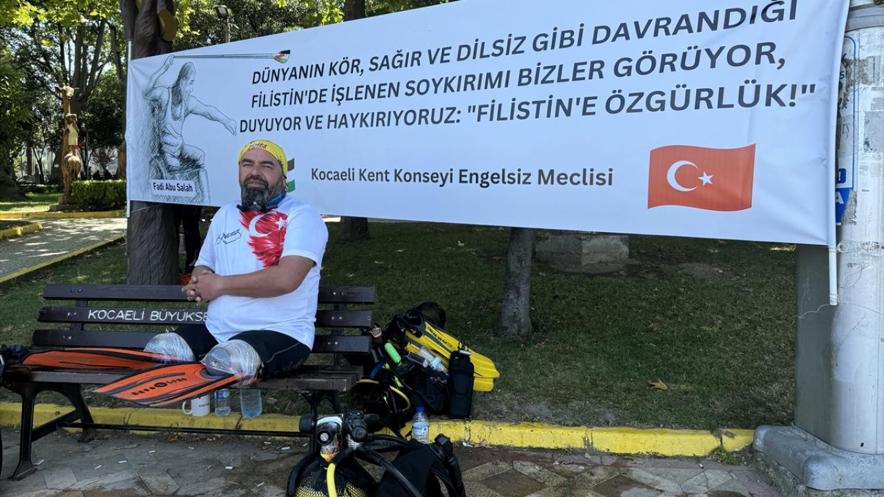"Dünyanın kör, sağır, dilsiz ve ikircikli tavırlarına inat, Kocaeli`deki tüm engelli dernekleriyle Kocaeli Kent Konseyi Engelsiz Meclisi olarak Filistin`deki bu insanlık ayıbını ve soykırımı şiddetle ve nefretle kınıyor, avazımız çıktığı kadar bağırıyoruz. Filistin özgürdür, özgür kalacak. Açtığımız pankartta Fadi Ebu Salah gözüküyor. Fadi Ebu Salah, İsrail`in faşist saldırılarında, iki bacağını kaybetmesine rağmen tekerlekli sandalyesinde direnişine devam etti. Geçtiğimiz yıllarda da şehit oldu. Bu vesileyle şehit Fadi Ebu Salah`ı da anmış bulunuyoruz."