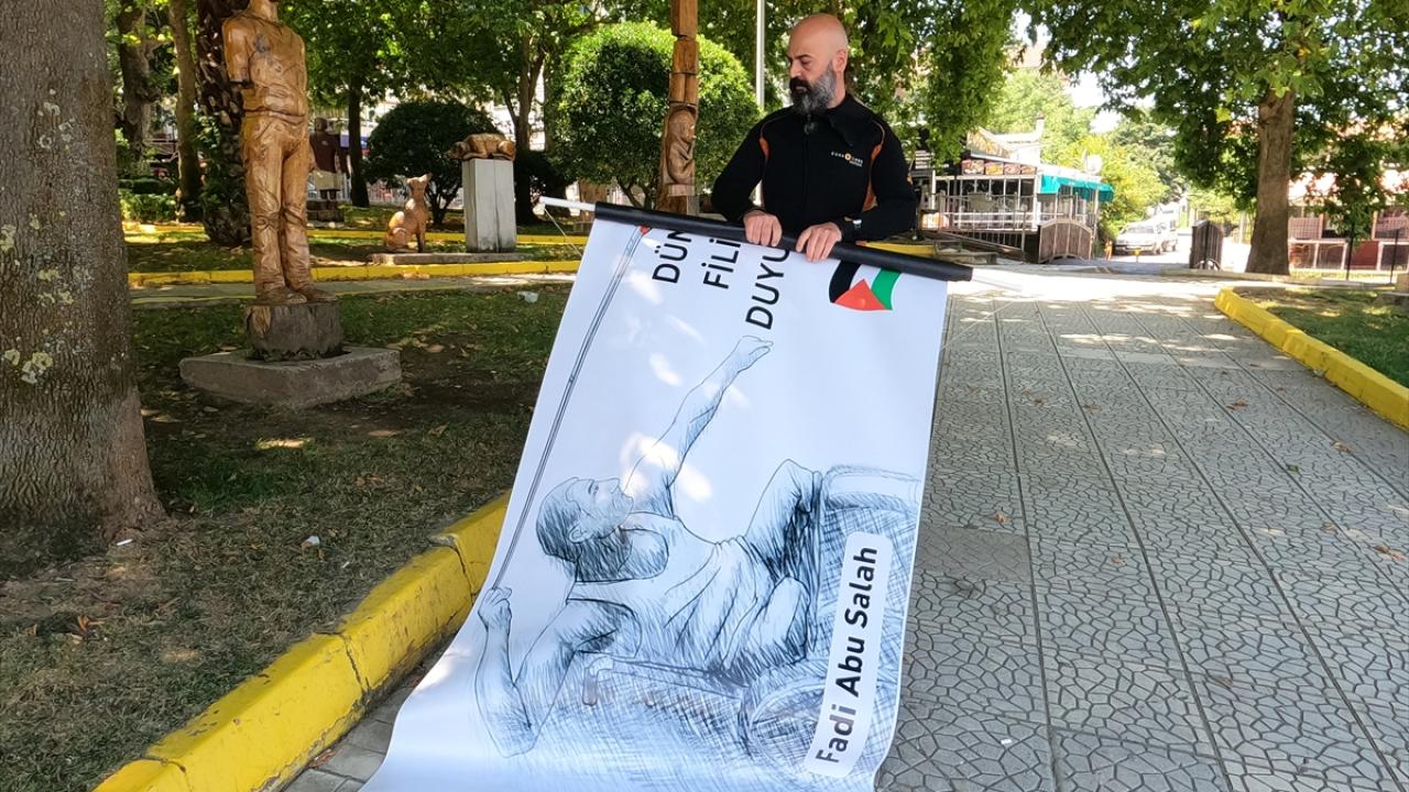 İkili ayrıca, ABD`nin İsrail Büyükelçiliğini Kudüs`e taşıması nedeniyle 2018`de Filistin`de çıkan olaylarda İsrail askerlerince öldürülen, direnişin sembollerinden biri haline gelen engelli Fadi Ebu Salah`ın görselinin yer aldığı, "Her mücadele engellerle doludur, zafer o engeli aşanlarındır." yazılı pankart açtı.