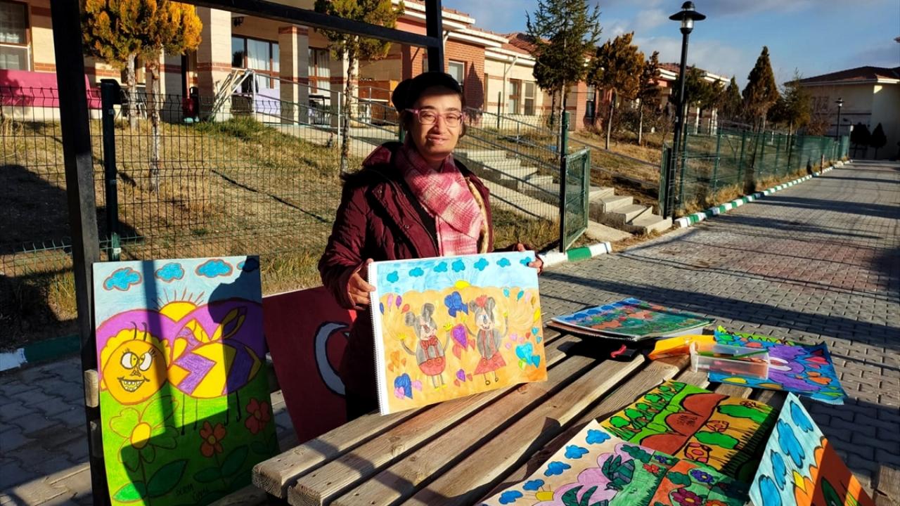 Kırşehir Engelsiz Yaşam Bakım Rehabilitasyon ve Aile Danışma Merkezi'nde kalan 35 yaşındaki engelli Derya Ünal, 7 yıldır yaptığı kuş, kedi ve doğa resimlerini sevdiklerine hediye ederek mutlu oluyor.