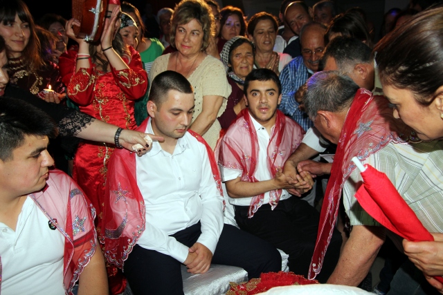 Bir günlük askere gidecek 5 engelli gence asker kınası yakıldı.