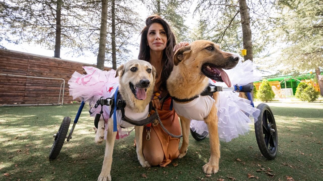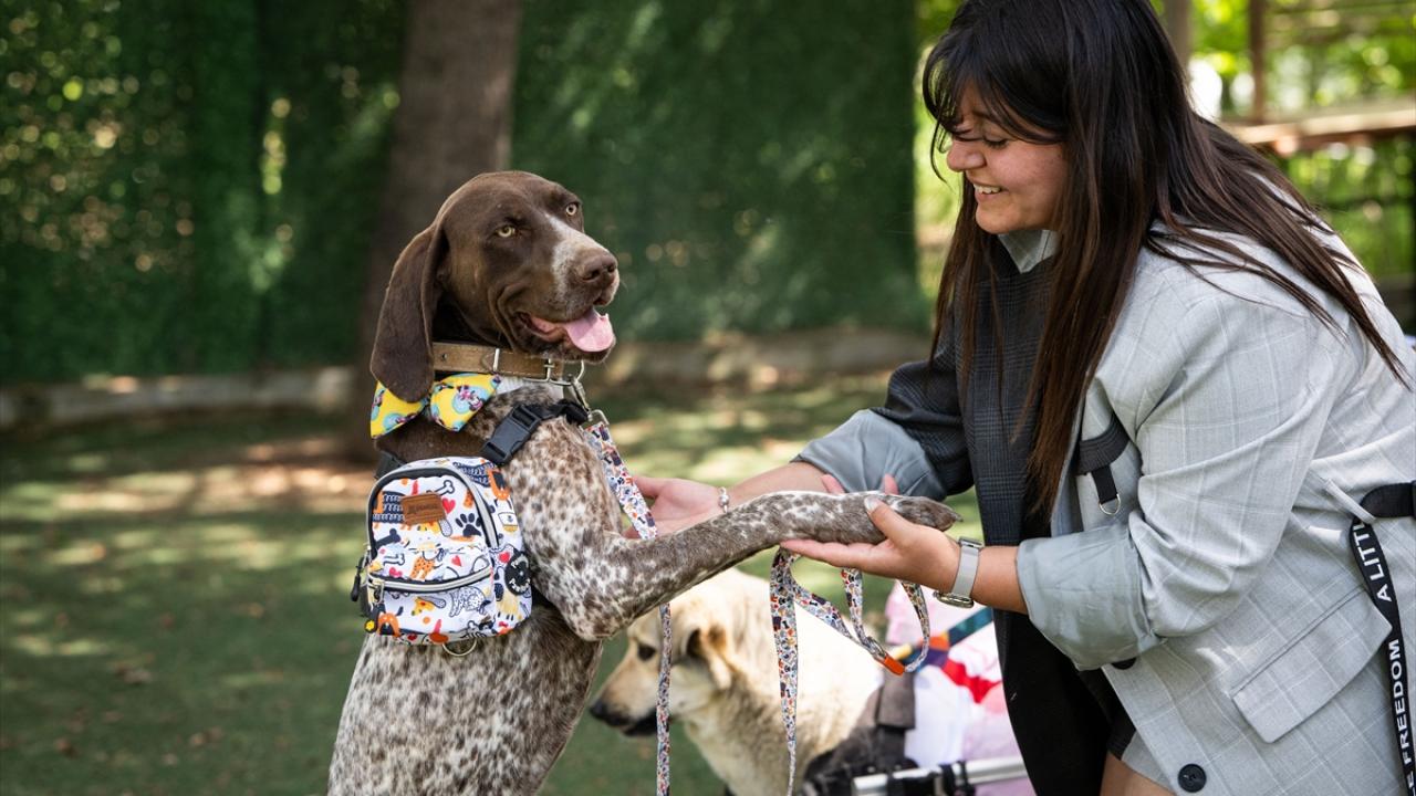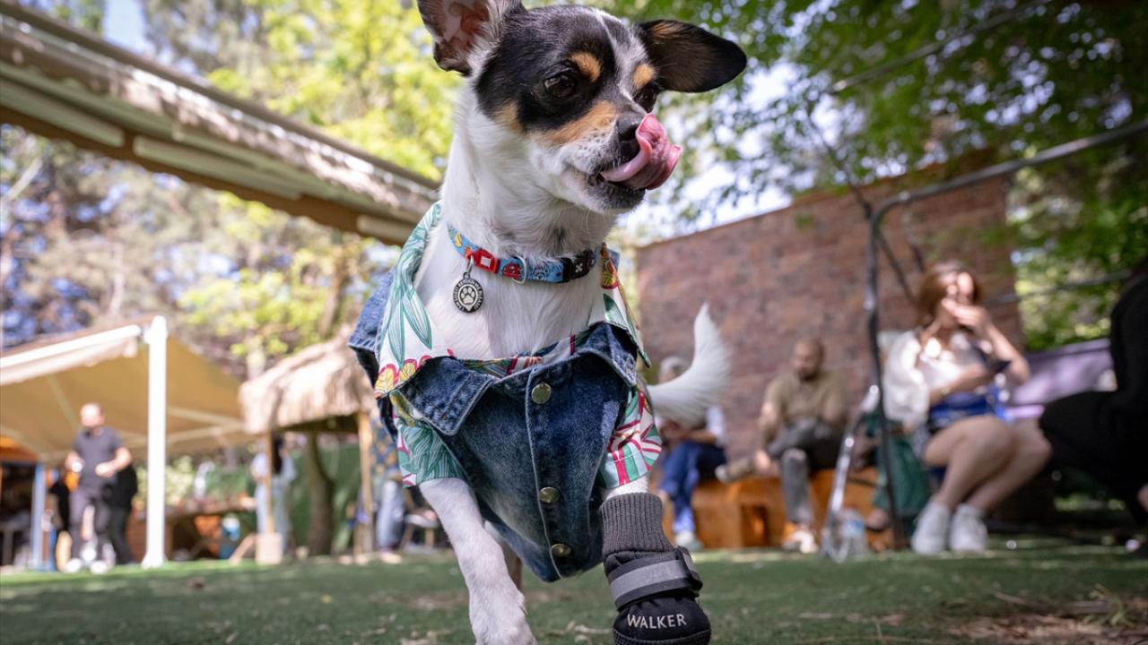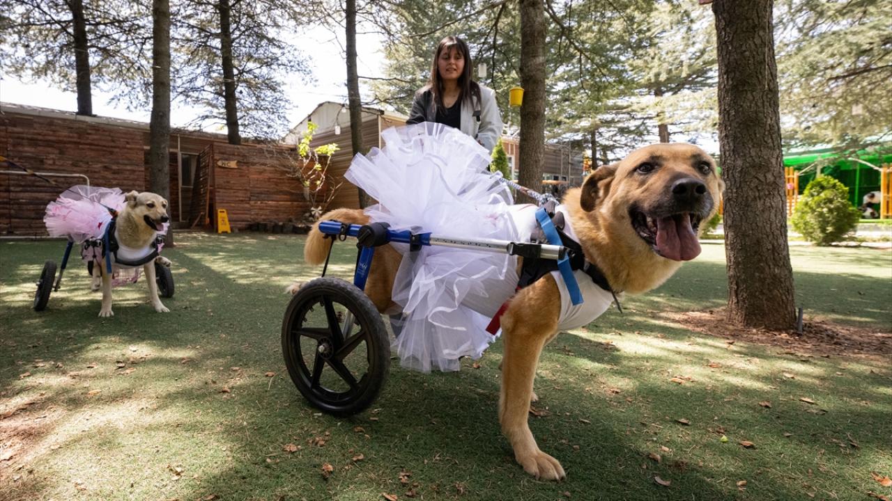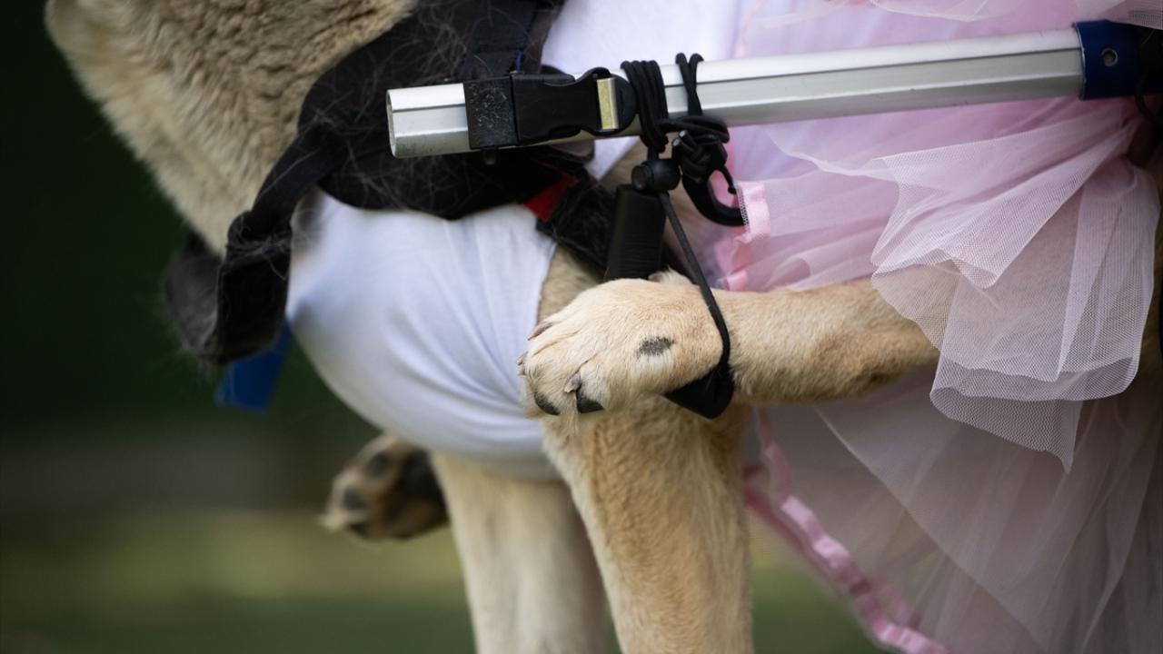 Trafik kazası, deprem, insan şiddeti gibi nedenlerle engelli kalan 8 köpek ile 2 kediye kendileri için özel tasarlanan kıyafetler giydirildi, tüylerine bakım yapıldı.