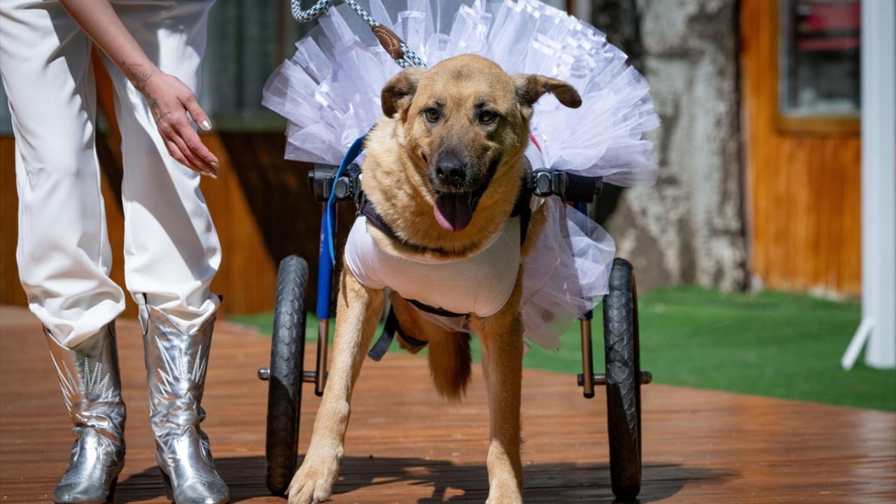 Ankara'da, 6 Şubat depremlerinde enkazdan çıkarılan, çeşitli kazalar ya da insan şiddeti sonucu engelli kalan kedi ve köpekler, düzenlenen defilede kendileri gibi engelli patili dostlarının tedavileri için mankenler eşliğinde podyumda yürüdü.