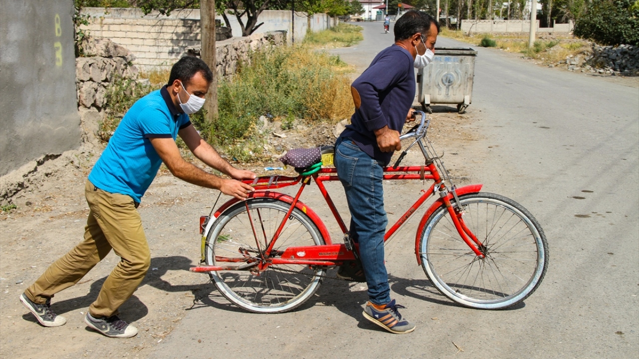 Iğdır'da yaşayan görme engelli Nusret Açık ve bedensel engelli arkadaşı Abidin Toyran, birbirlerine "ayak" ve "göz" olup tandem bisikletle özgürce geziyor.