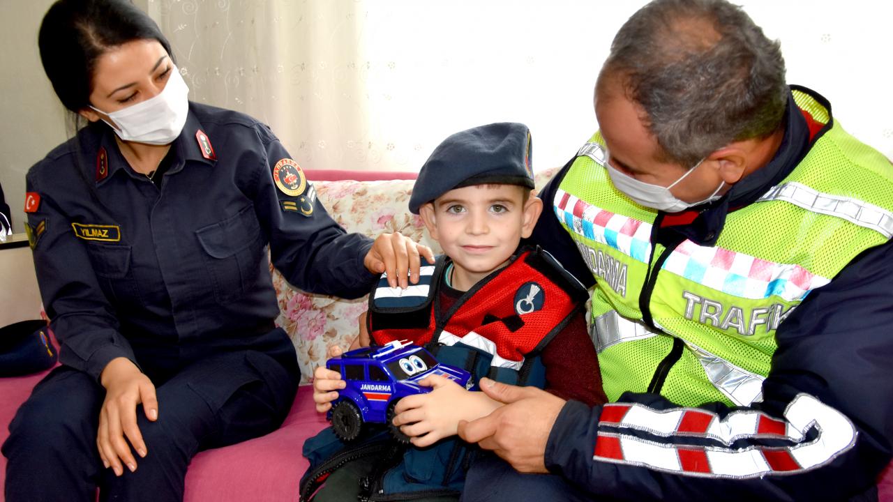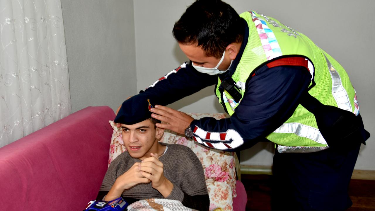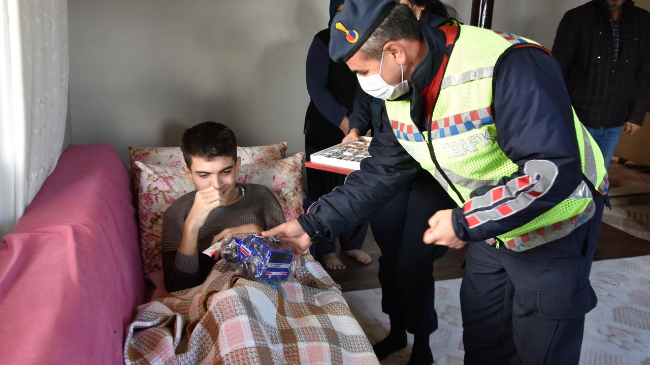Engelli kardeşlerin yüzünü jandarma güldürdü