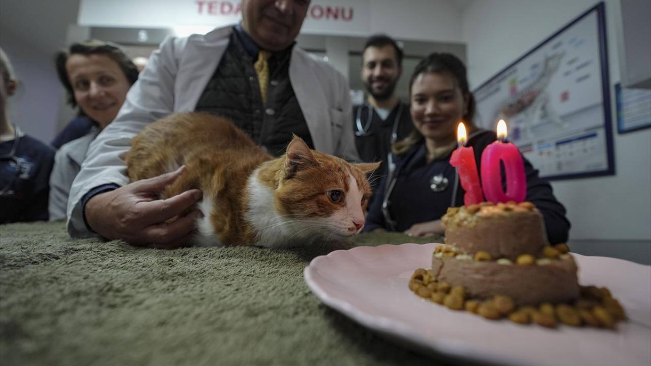 Hastanenin Veteriner Başhekimi Tarkan Özçetin`in himayesine aldığı Umut`a, her anına tanıklık eden veteriner hekimlerle birlikte 10`uncu yaş günü kutlaması yapıldı.