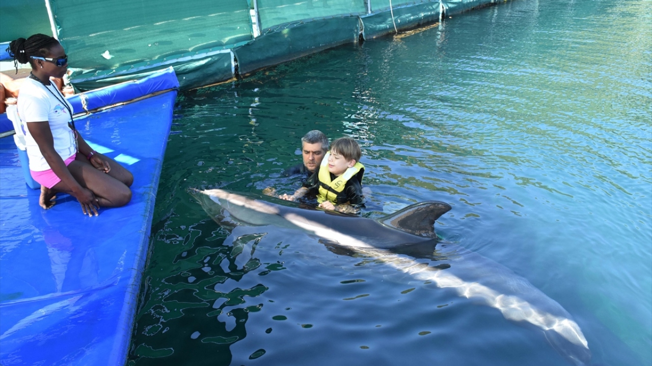 Muğla'nın Marmaris ilçesinde zihinsel ve bedensel engelli çocuklara yunuslarla terapi uygulanıyor.