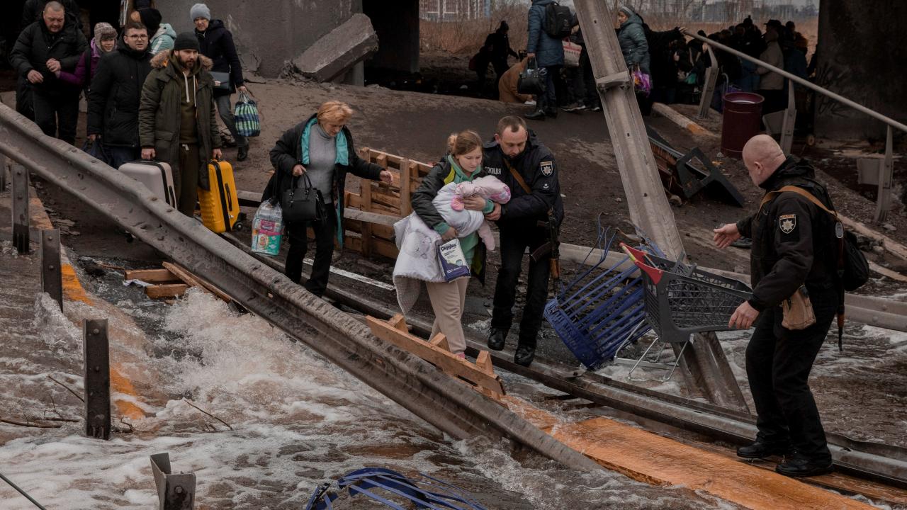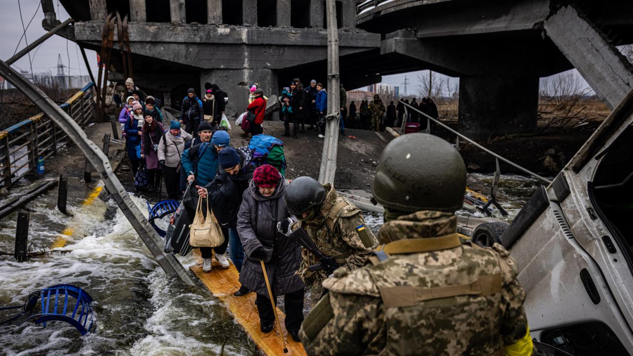 Ukrayna askerleri de bombardıman altındaki sivilleri tahliye etmeye çalışıyor. Ancak Irpin kentinden çıkmaya çalışanlar saldırıların hedefi oldu.