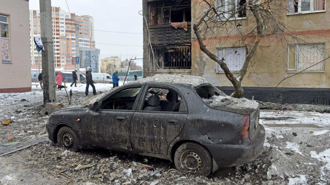 Hava saldırılarının devam ettiği Ukrayna`nın ikinci büyük şehri Harkiv`de binalar yıkıldı, araçlar yandı.