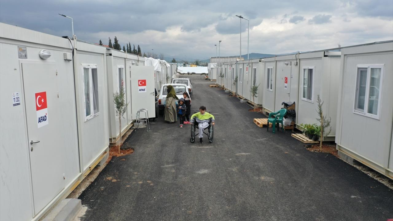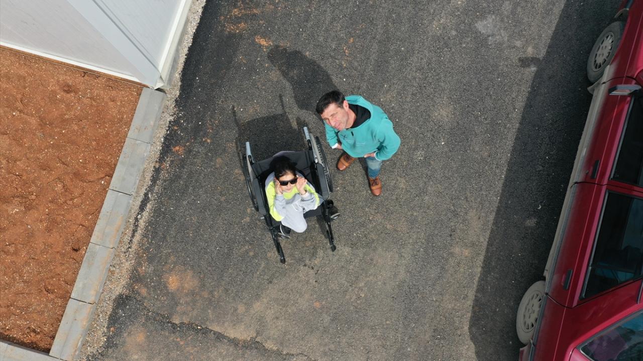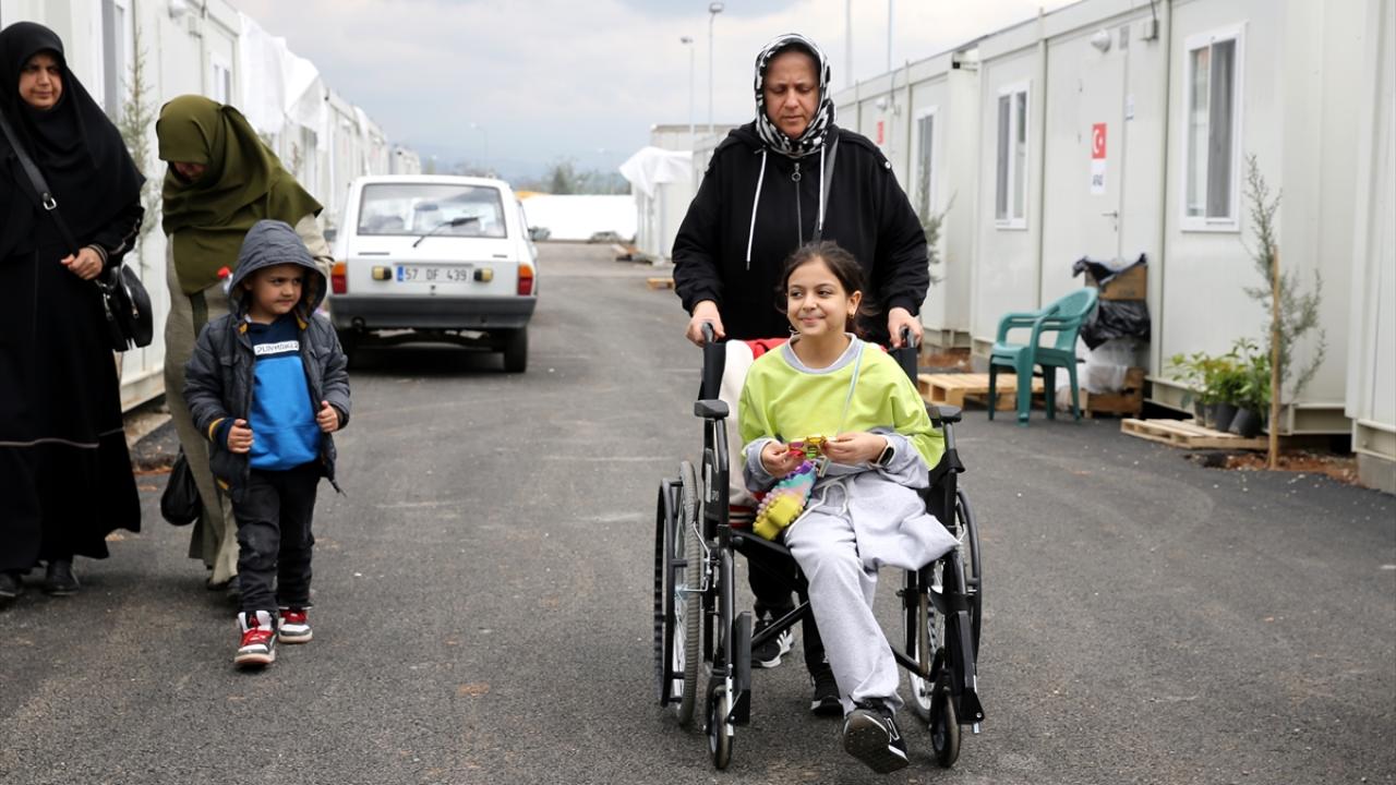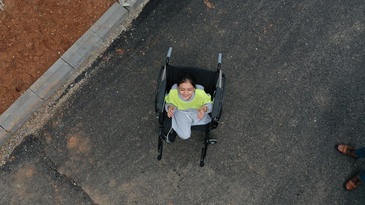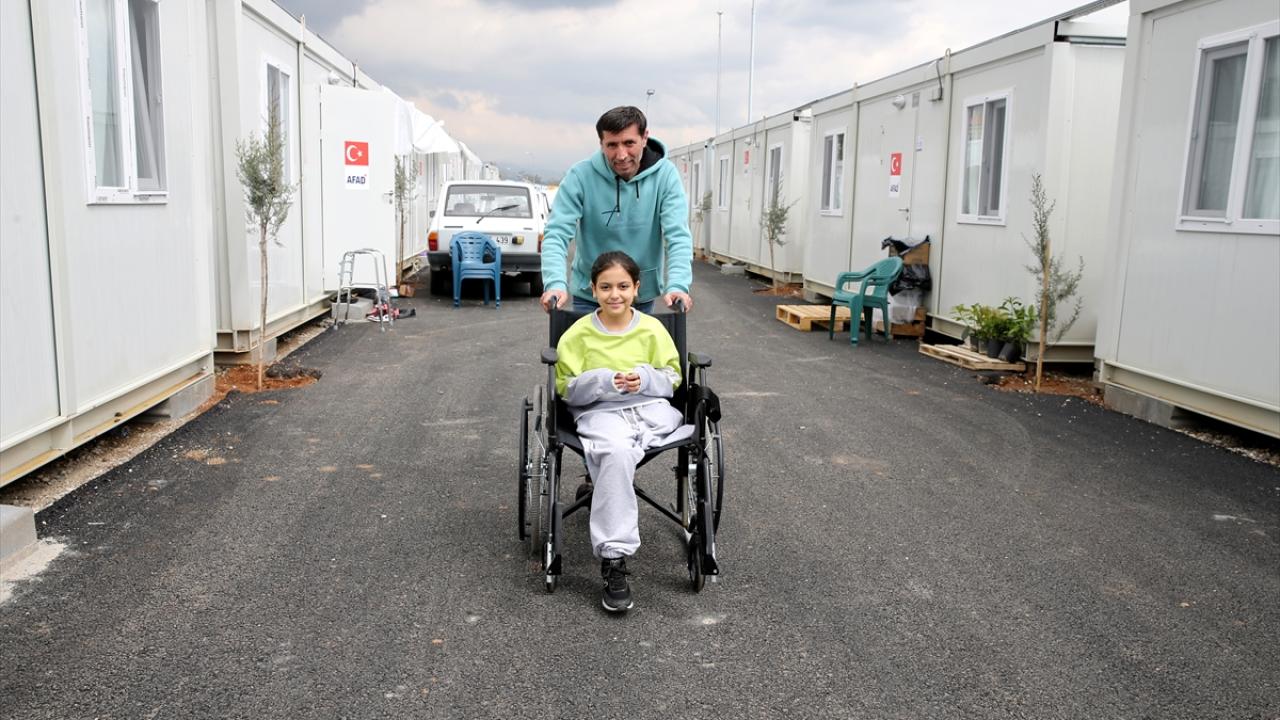 Melike, konteyner kentte yürüteç ve tekerlekli sandalye yardımıyla gezme imkanı buluyor.