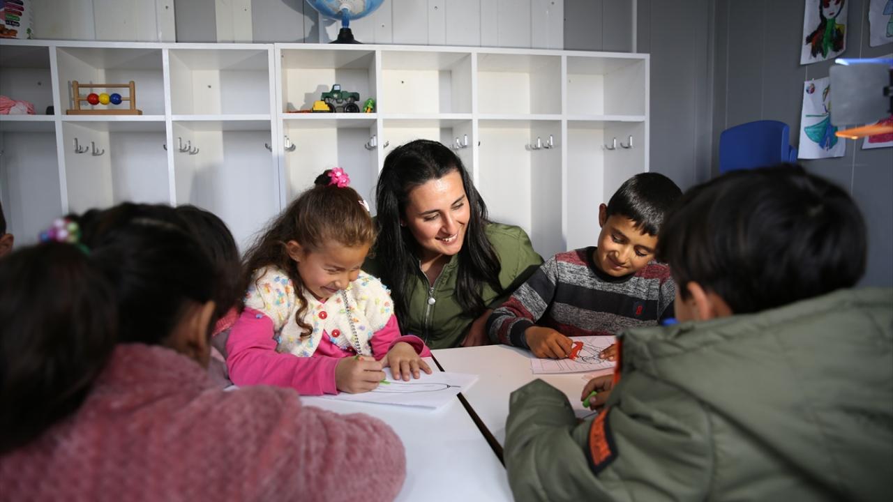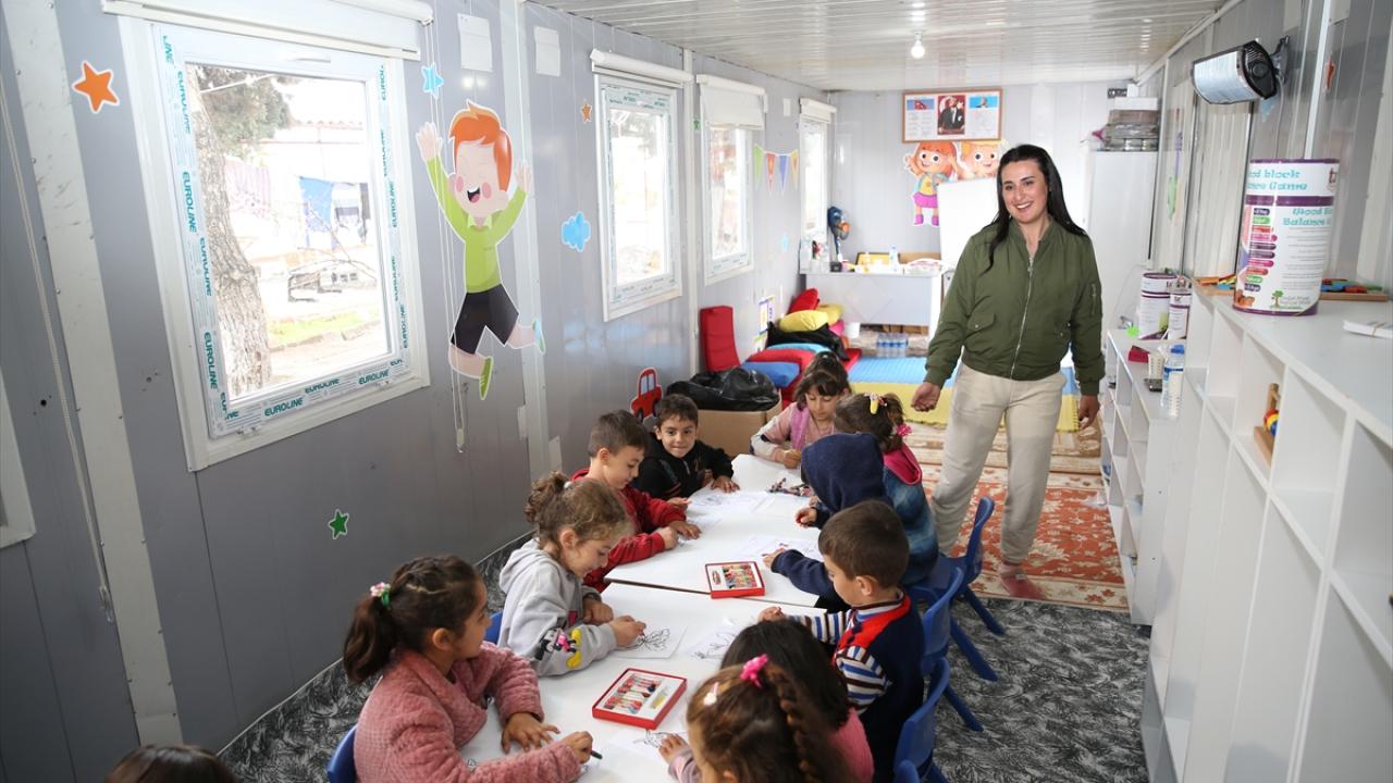 Özgenur öğretmen, depremin travmasını yaşayan çocuklar için mesai saati gözetmeksiniz çalışmaya devam ediyor.