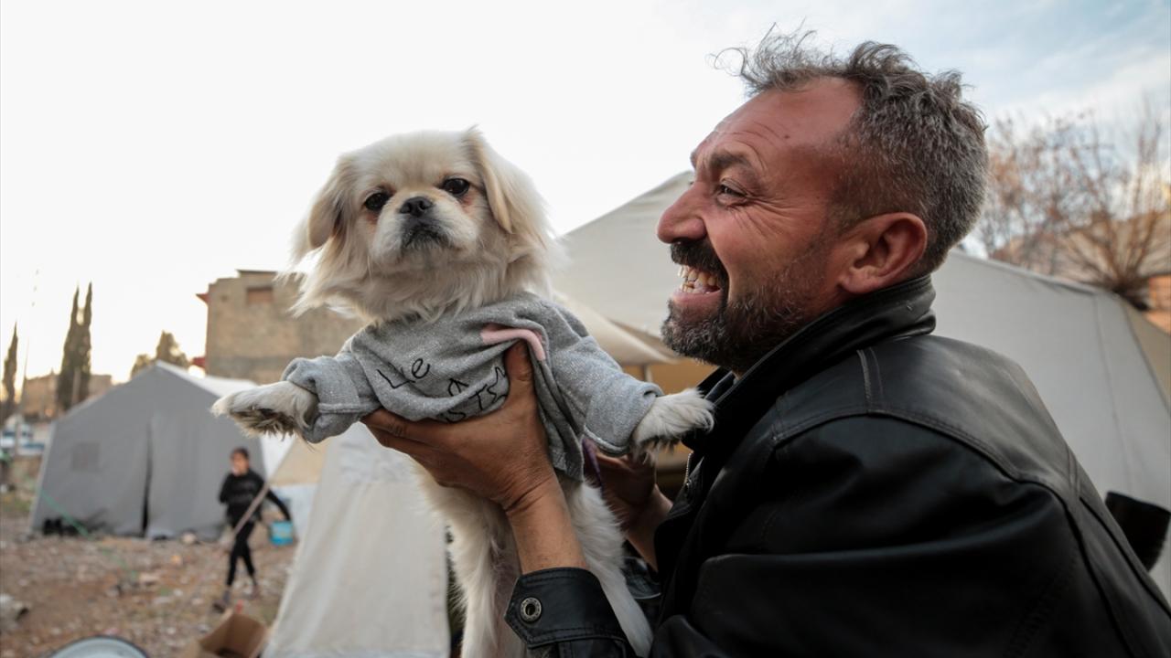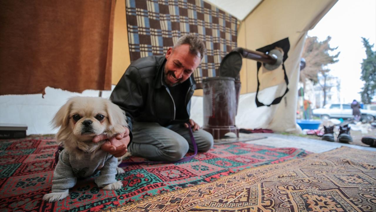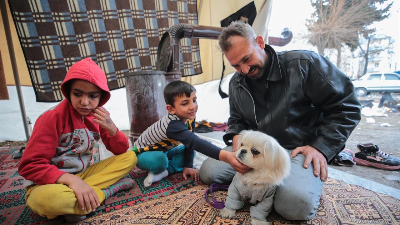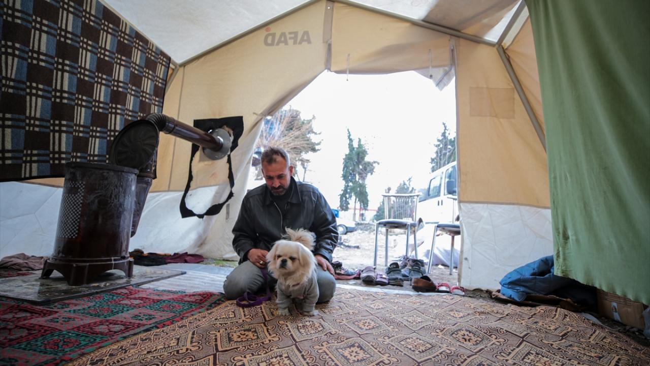 Merkez üssü Kahramanmaraş olan depremlerden etkilenen Adıyaman'da yaşayan Umut Yamuktu, enkazdan çıkardıktan sonra sahiplendiği ve "Bıncır" adını verdiği köpekle çadırını paylaşıyor.