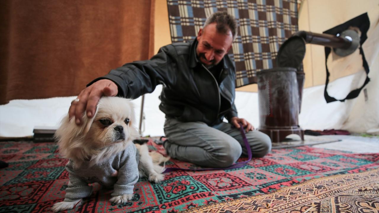 Enkazdan kurtardığı "Bıncır" ile aynı çadırda yaşıyor