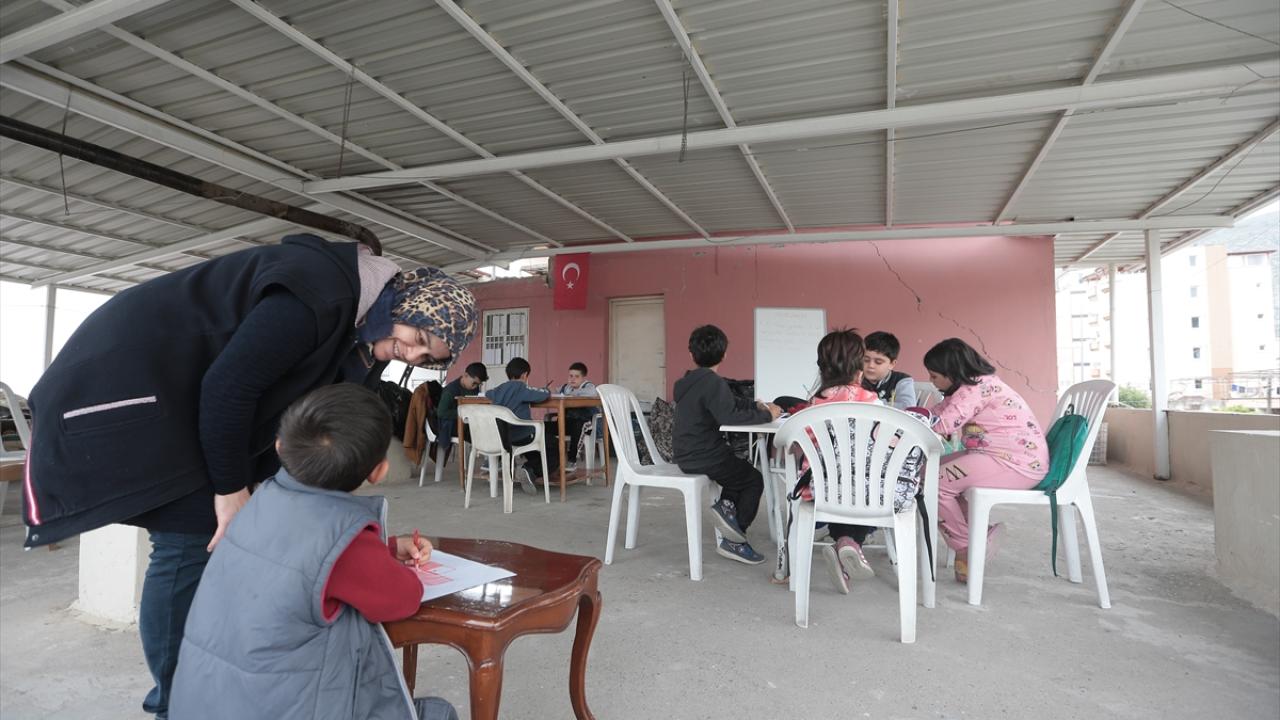 Evinin terasını eğitim için açan Münevver Ece, afetten olumsuz etkilenen çocukların kendi aralarında oyun oynarken bile enkaz kaldırdıklarını gördüklerini anlattı.