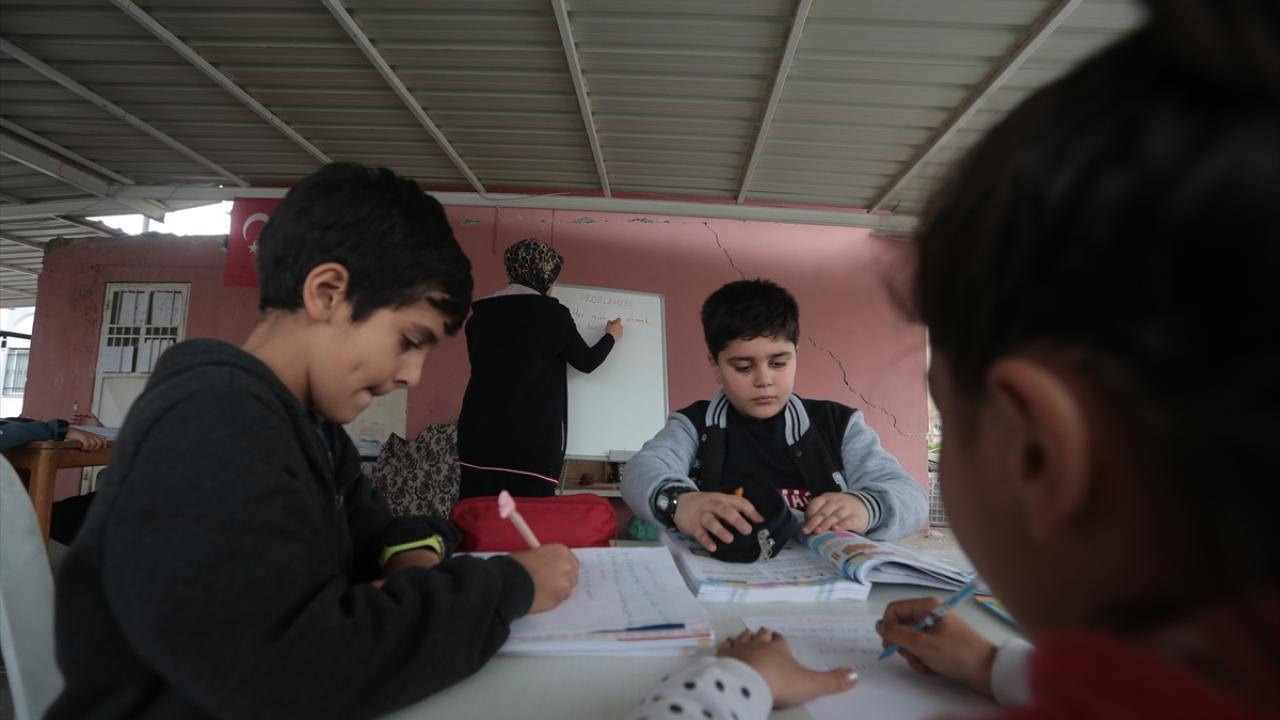 Komşuları ve akrabalarının yardımıyla masa, sandalye, yazı tahtası ve kırtasiye malzemeleri temin eden Yıldız, artçı sarsıntılar azalınca teyzesi Münevver Ece`nin aynı mahalledeki 2 katlı evinin teras katında çocuklar için uygun bir alan hazırladı.