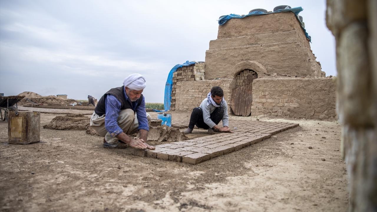 Irak'ın Erbil kentinde yapıların inşasında kullanılan lime tuğlaların üretimi, geleneksel yöntemlerle devam ediyor.