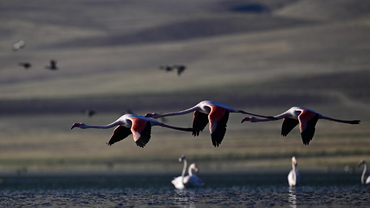 Havzanın ekosistemine canlılık katan flamingolar, havaların soğumasıyla birlikte sıcak bölgelere göç ediyor.