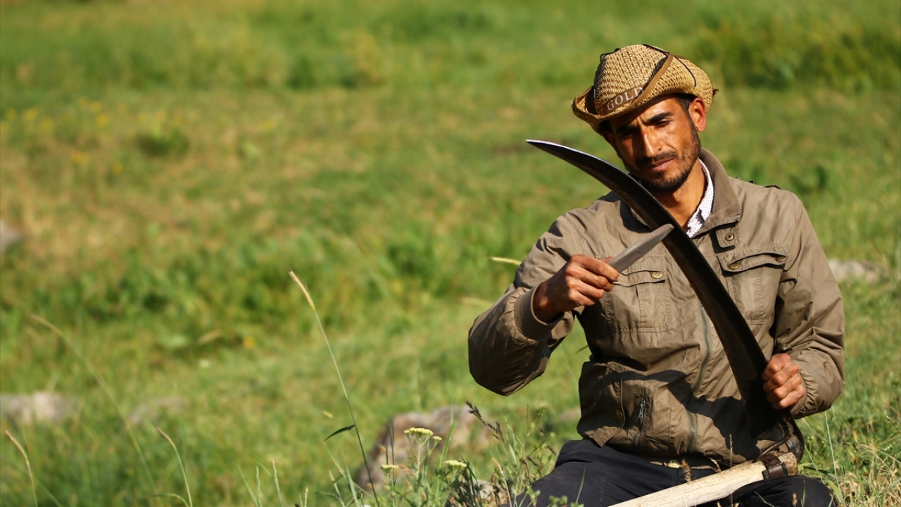 Köydeki komşularıyla yardımlaşarak çalıştıklarını anlatan Baran, "Bu yıl yağışların fazla olmasından dolayı bereketli bir sezon geçiriyoruz. Otları iki kez biçeceğiz. Uygun olan arazilerde otları makinelerle biçiyoruz ancak taşlı ve engebeli araziler için de tek çare tırpan." diye konuştu.