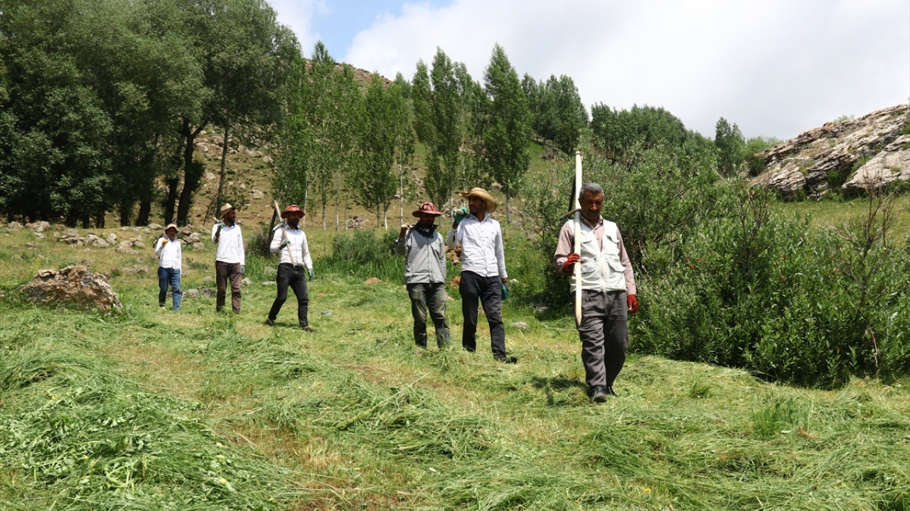 Ercişli çiftçilerin sıcakta zorlu ot biçme mesaisi