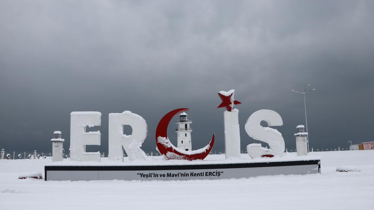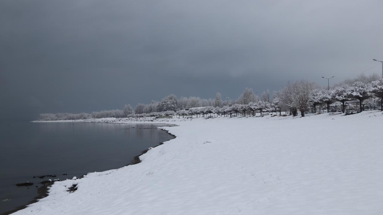 Erciş’te etkili olan kar yağışı kartpostallık görüntüler oluştu