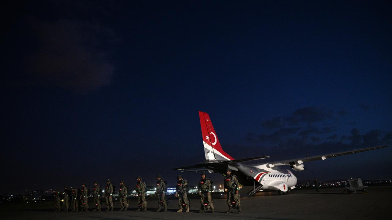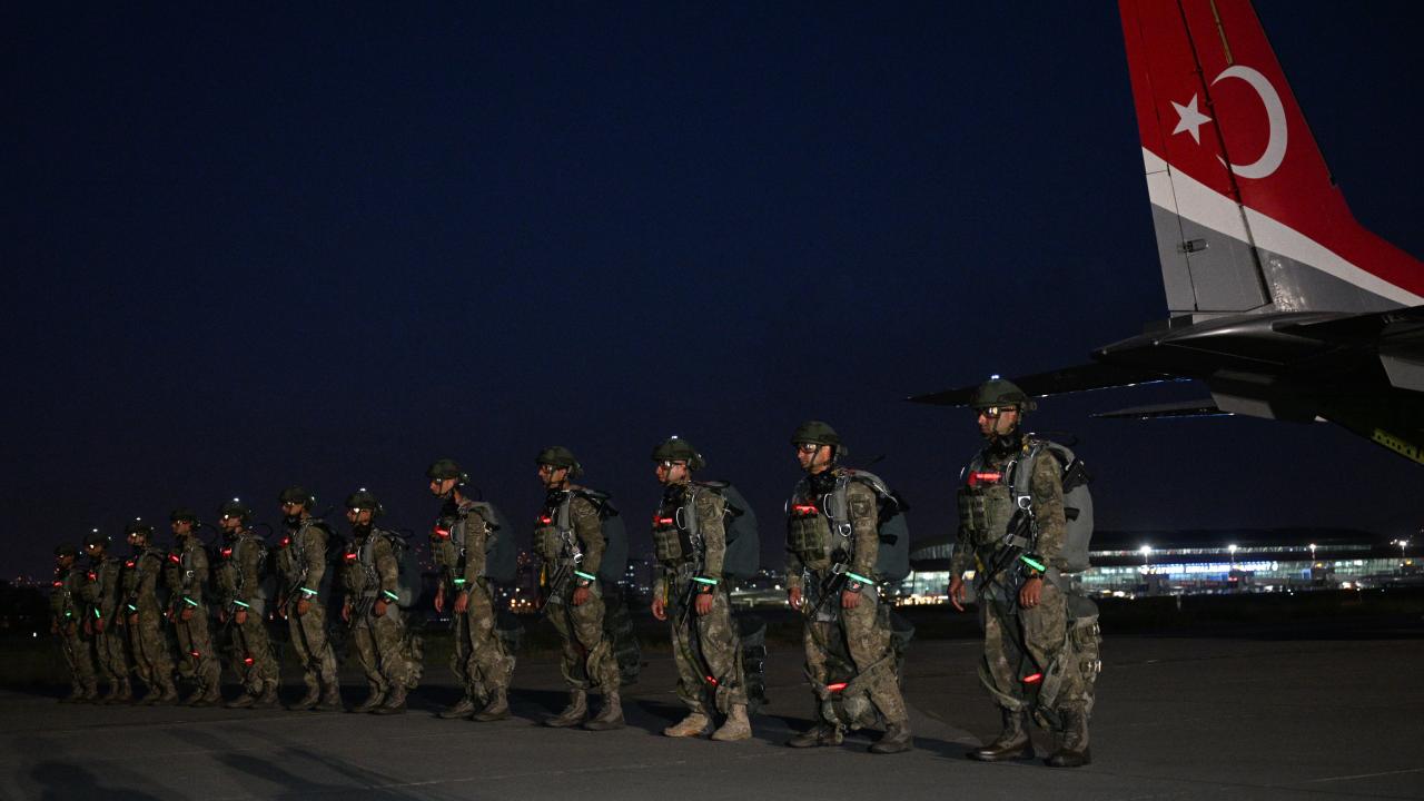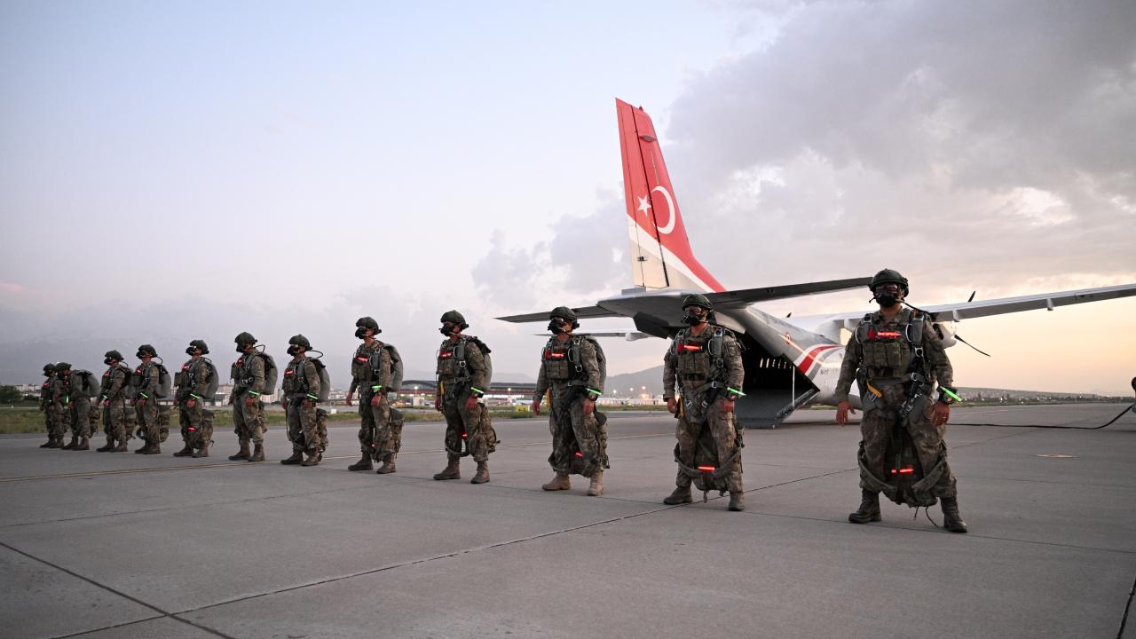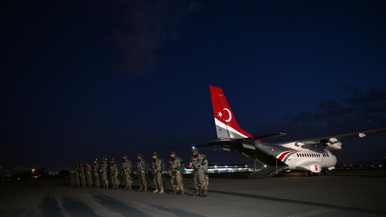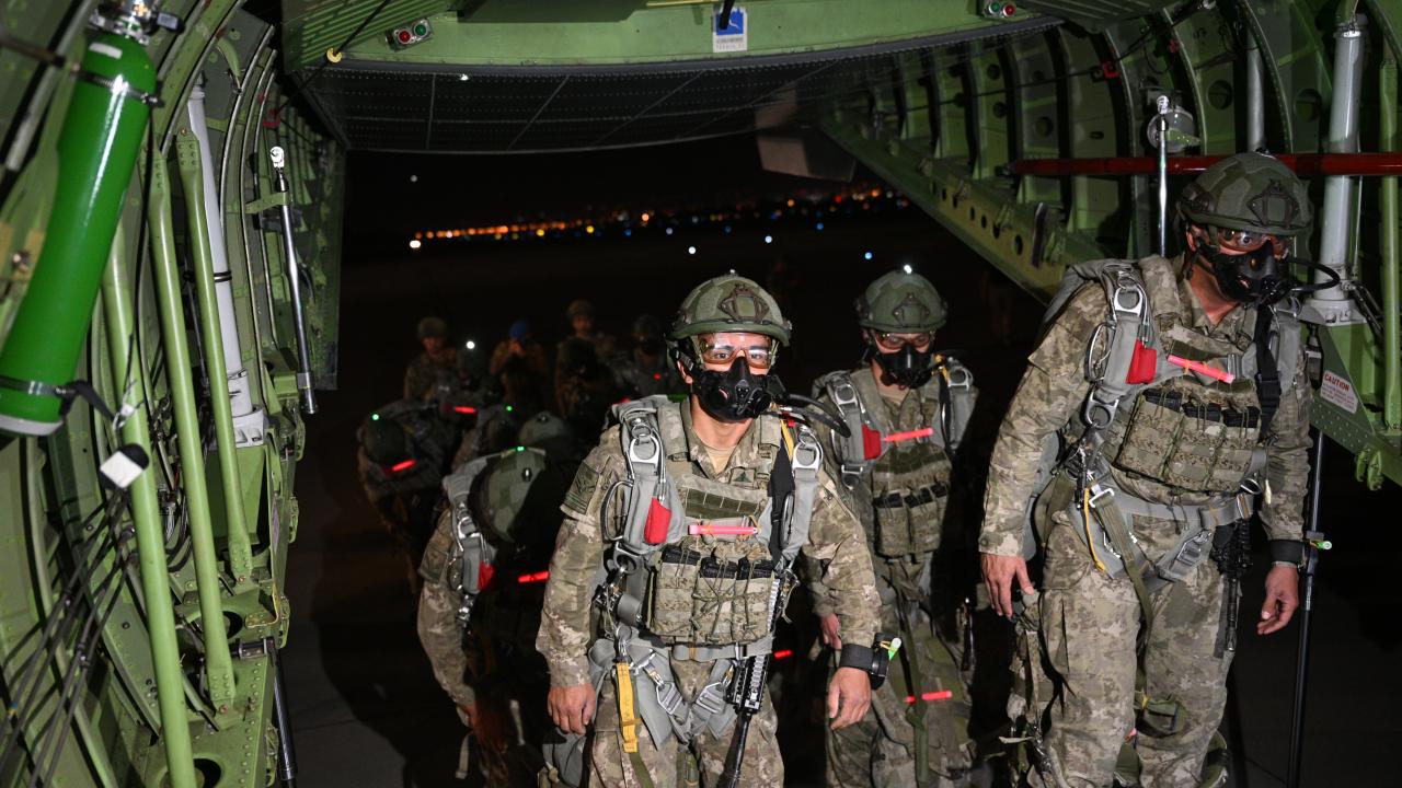 Türk Silahlı Kuvvetleri'nin (TSK) Kayseri'de düzenlediği "Erciyes-2025 Tatbikatı"nın seçkin gözlemci günü, gece atlayışı ile başladı. Tatbikat senaryosuna göre, 12. Hava Ulaştırma Ana Üs Komutanlığından havalanan C-130 nakliye uçağından hava kılavuz harekatını gerçekleştirmek üzere paraşütçü komandolar bölgeye atlayış yaptı.