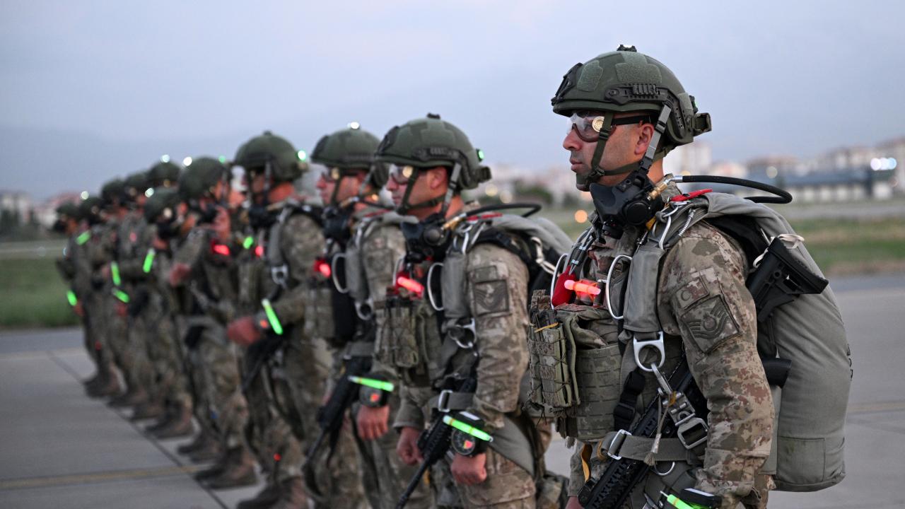 Kara Kuvvetleri Komutanlığına bağlı komando tugayları arasında hava indirme harekatı yeteneğine sahip olan, bunu Kıbrıs Barış Harekatı`nda icra eden ve terörle mücadele operasyonlarında da görev alan 1. Komando Tugay Komutanlığınca düzenlenen "Erciyes-2025 Tatbikatı"nın "seçkin gözlemci günü" kapsamında, İncesu ilçesi yakınlarındaki Şehit Teğmen Hasan Bak Atma ve Atlama Sahası`nda paraşütle gece atlayışı yapıldı.