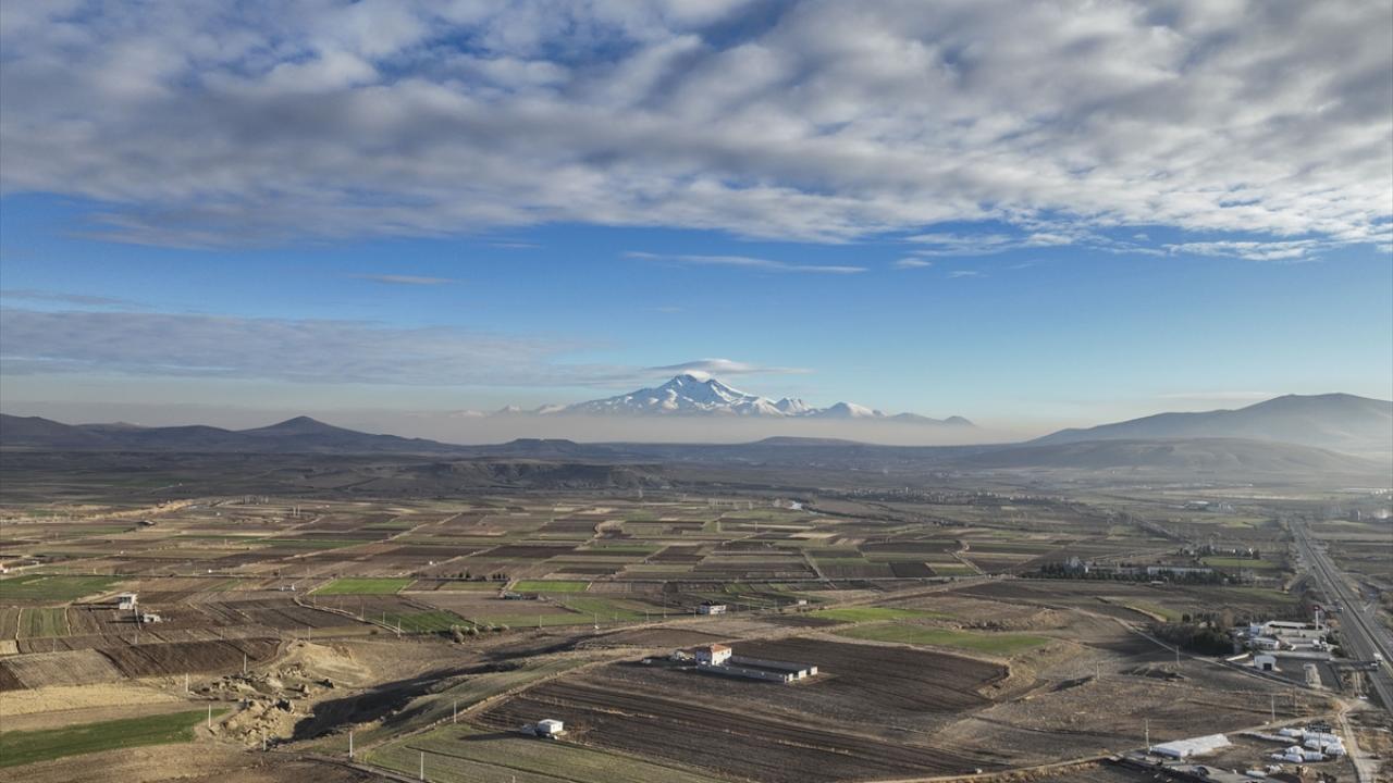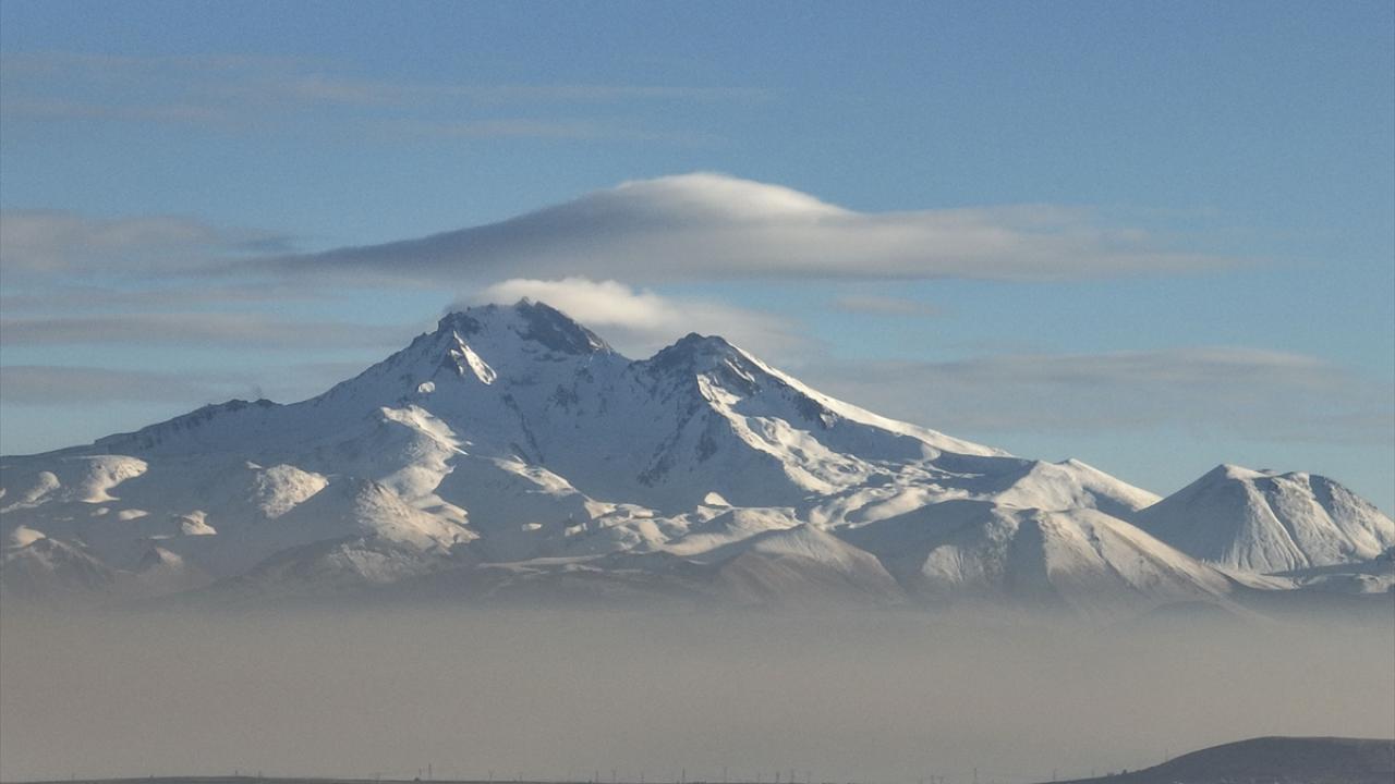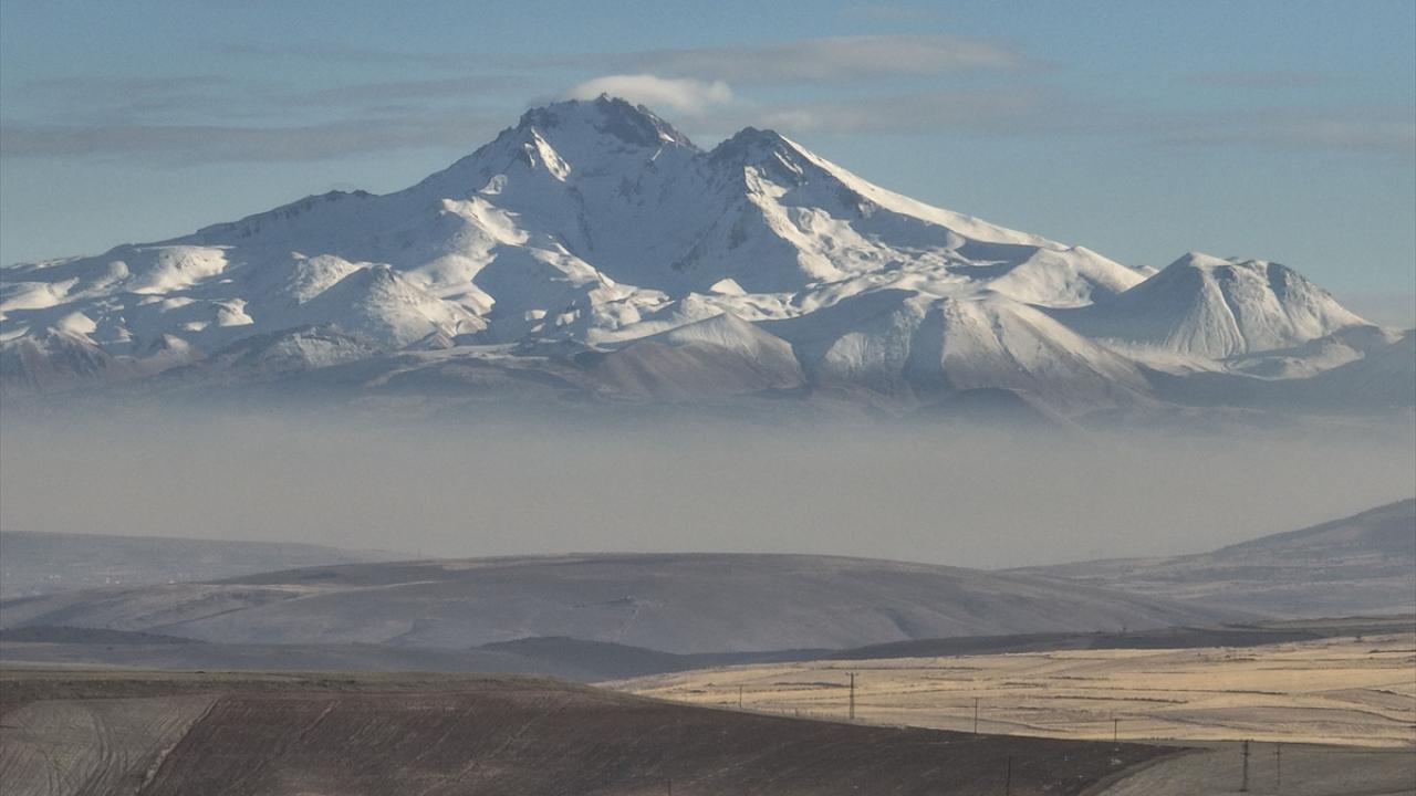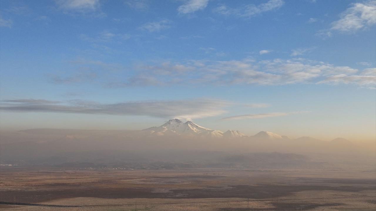 Erciyes Dağı eteklerine çöken pus görüntülendi