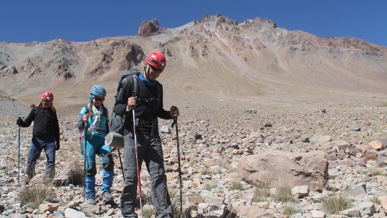 Tarifeli zirve tırmanışına katılan doğaseverler, adrenalin dolu bir yürüyüşün ardından gün doğumunu Erciyes`in zirvesinde izleme imkanı buluyor.