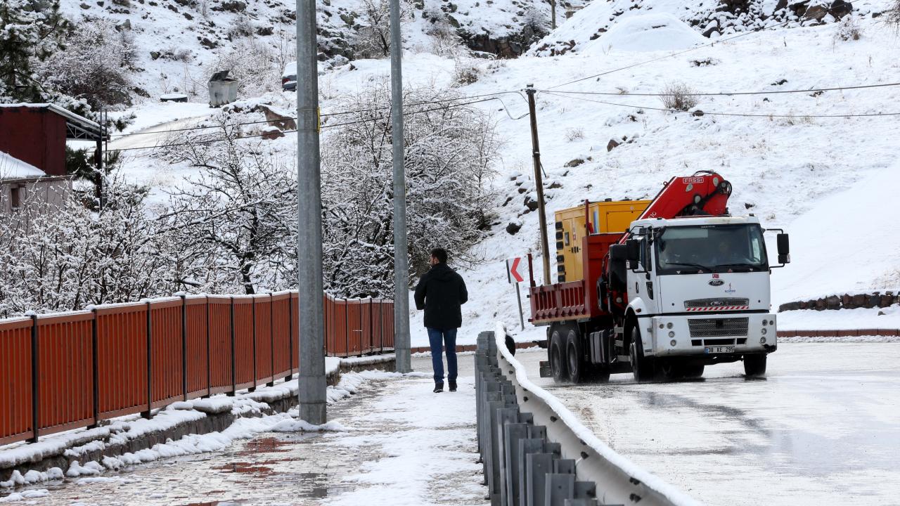 Büyükşehir Belediyesi ve karayolları ekipleri de merkeze giden yolda buzlanma riskine karşı çalışmalarını sürdürüyor.