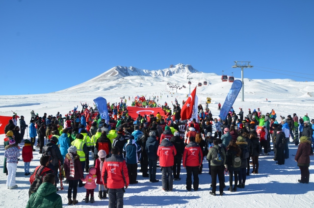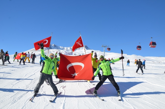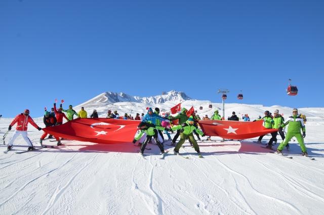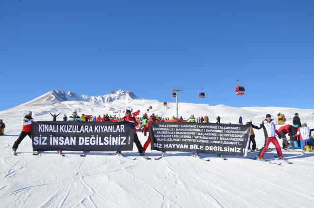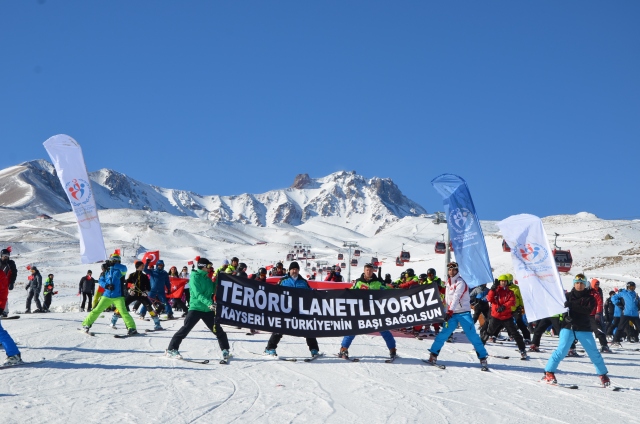 Kayseri'de çarşı iznine çıkan askerlere yönelik terör saldırısı, Erciyes Dağı'nda kayakçıların da katılımıyla protesto edildi.
