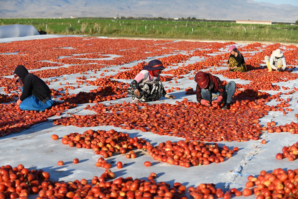 Yaklaşık 100 dekar alanda mevsimlik tarım işçileri tarafından domateslerin ikiye kesilip, alanda serili örtüye dizildiğini anlatan Bektaş, isteğe göre tuz ya da kükürt atılan domateslerin yaklaşık bir hafta güneşte kurutulacağını belirtti.