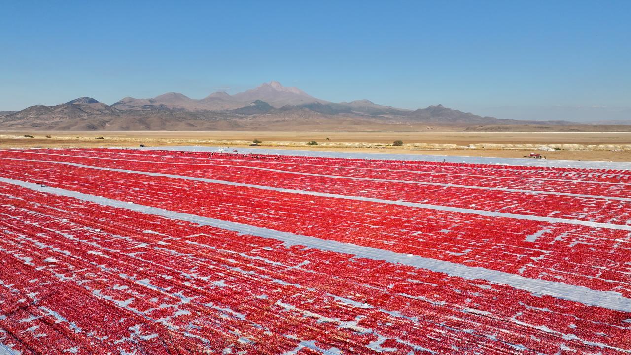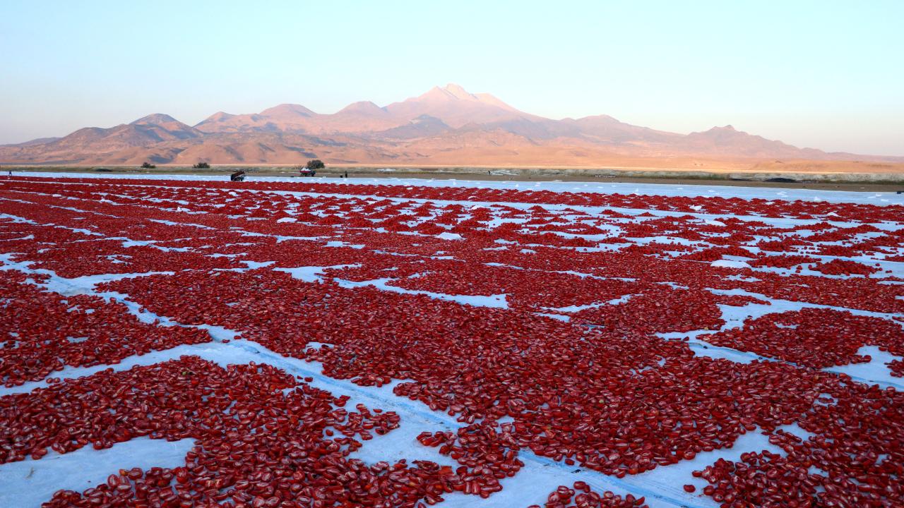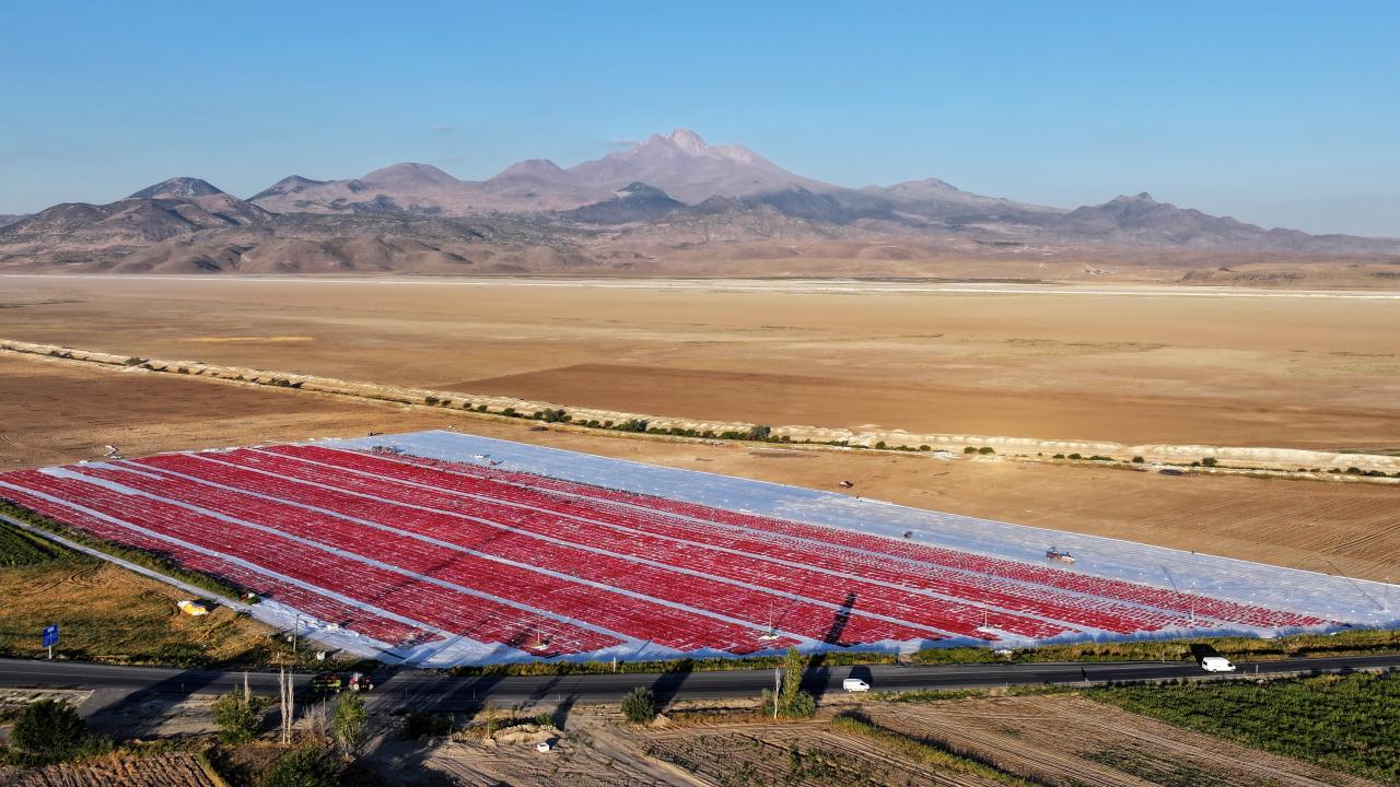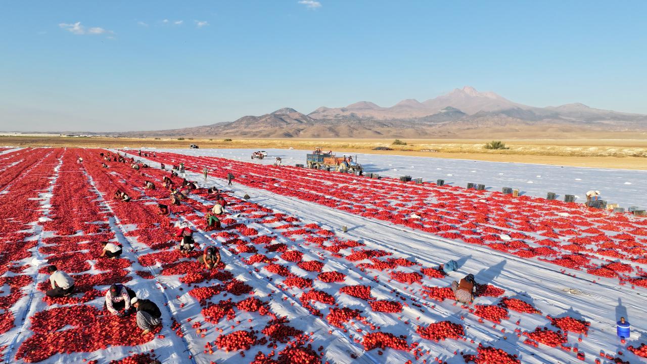 Kentin farklı noktalarında yetiştirilen domatesler, ağustosta bölge üreticileri tarafından hasat edilip kasalarla yüklendikleri araçlarla Erciyes Dağı eteklerindeki devasa arazilere getiriliyor.