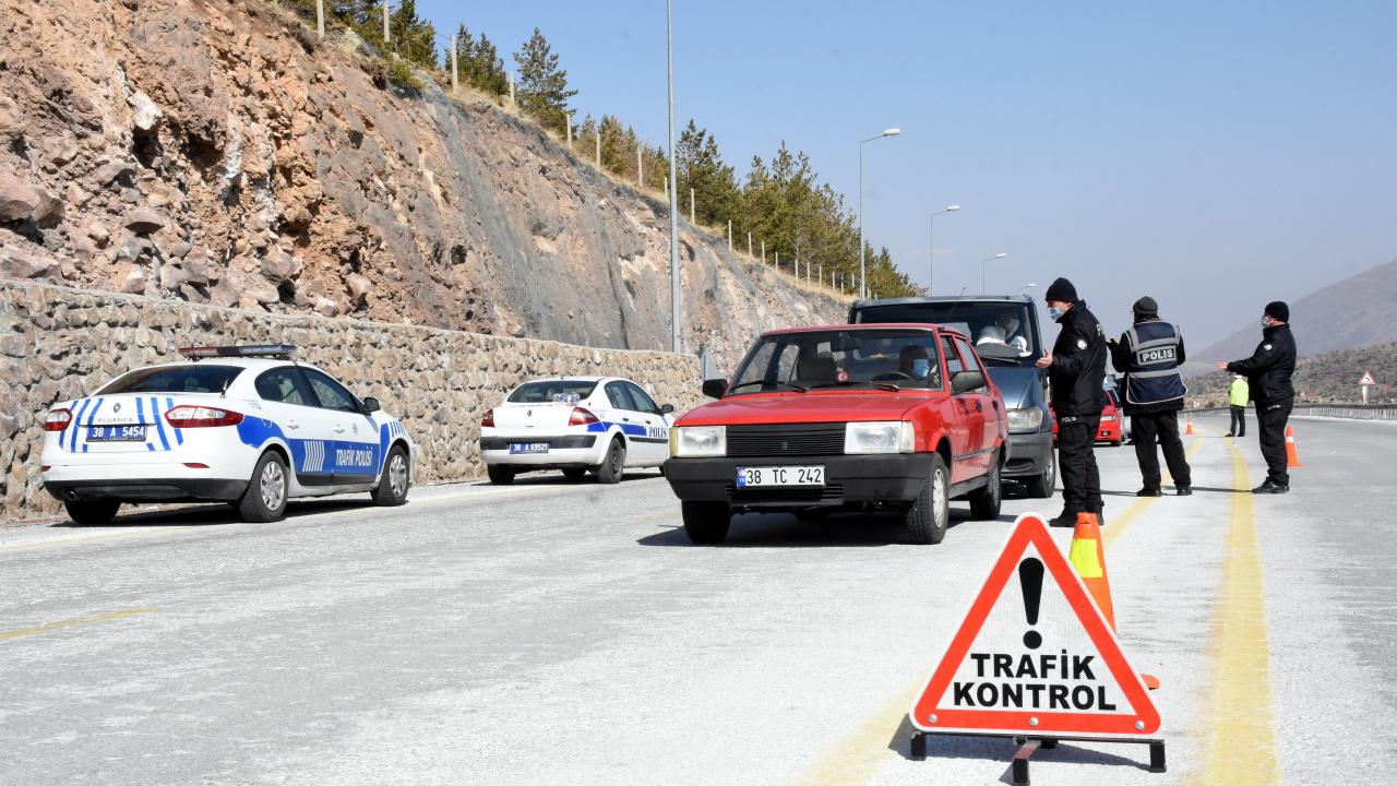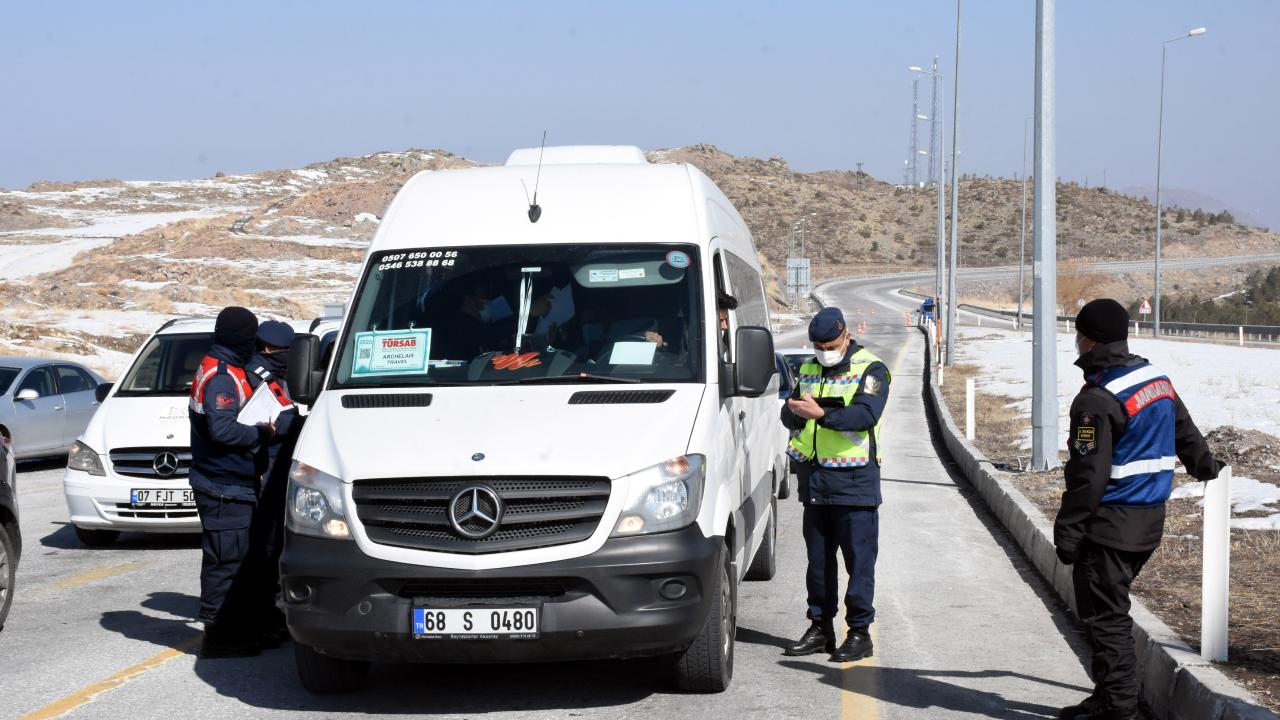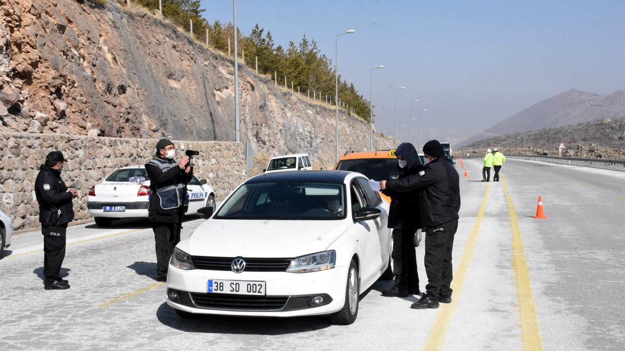 Önemli kış turizm merkezlerden Erciyes Kayak Merkezi yolunda gerçekleştirilen denetimde de araçları durduran jandarma ve polis, vatandaşların izin belgelerini inceledi.