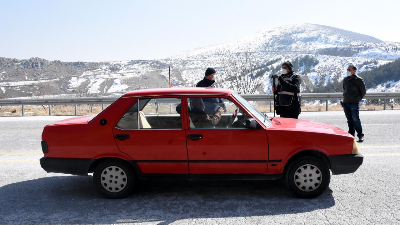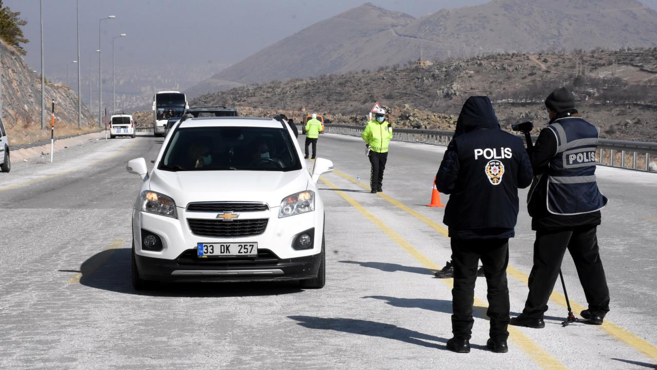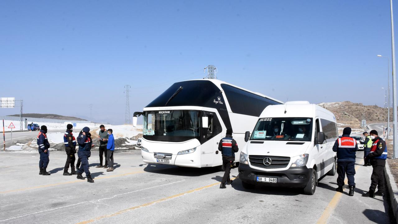 Jandarma ve polis ekipleri, sokağa çıkma kısıtlaması kapsamında kentin farklı bölgelerindeki kara yolu uygulama noktalarında, sürücü ve araçlardaki yolcuların Covid-19 tedbirlerine uyup uymadığını kontrol etti.