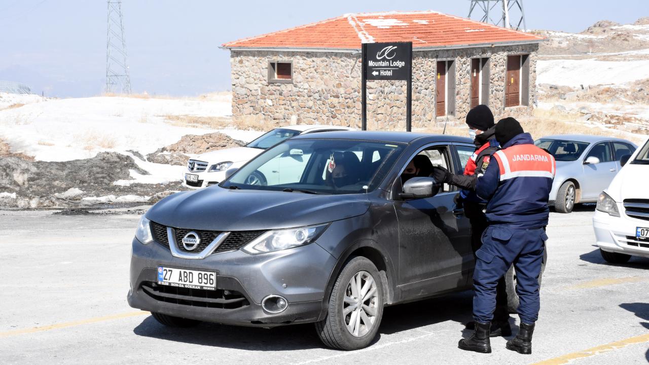 Kayseri İl Jandarma Komutanlığı ve İl Emniyet Müdürlüğü ekipleri, yeni tip koronavirüs (Covid-19) tedbirleri kapsamında Erciyes Kayak Merkezi yolunda denetim yaptı.