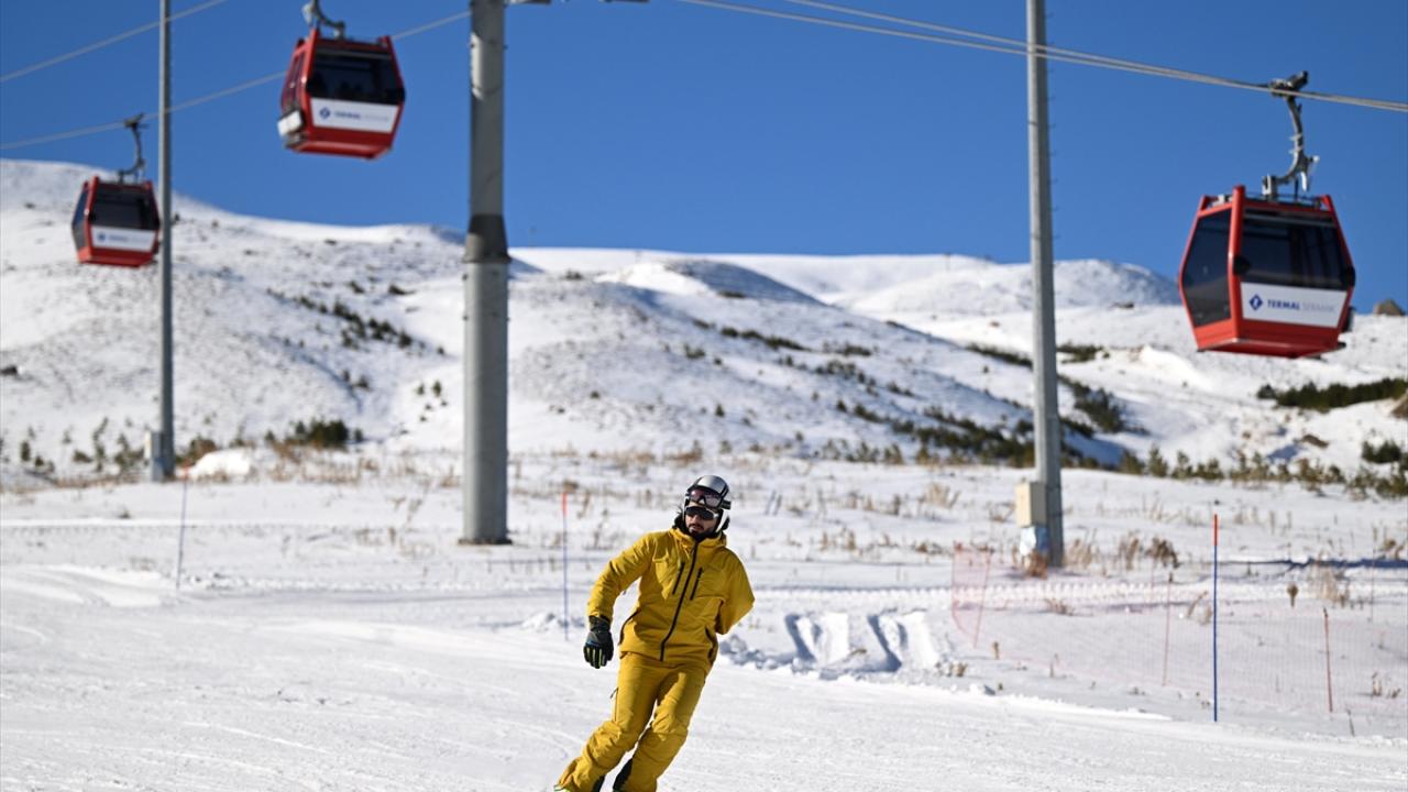 Kar kalınlığının yüksek kesimlerde 70 santimetreye ulaştığı Erciyes`te, pistlerde ezilmiş kar kalınlığı ise 35 santimetreyi geçti.