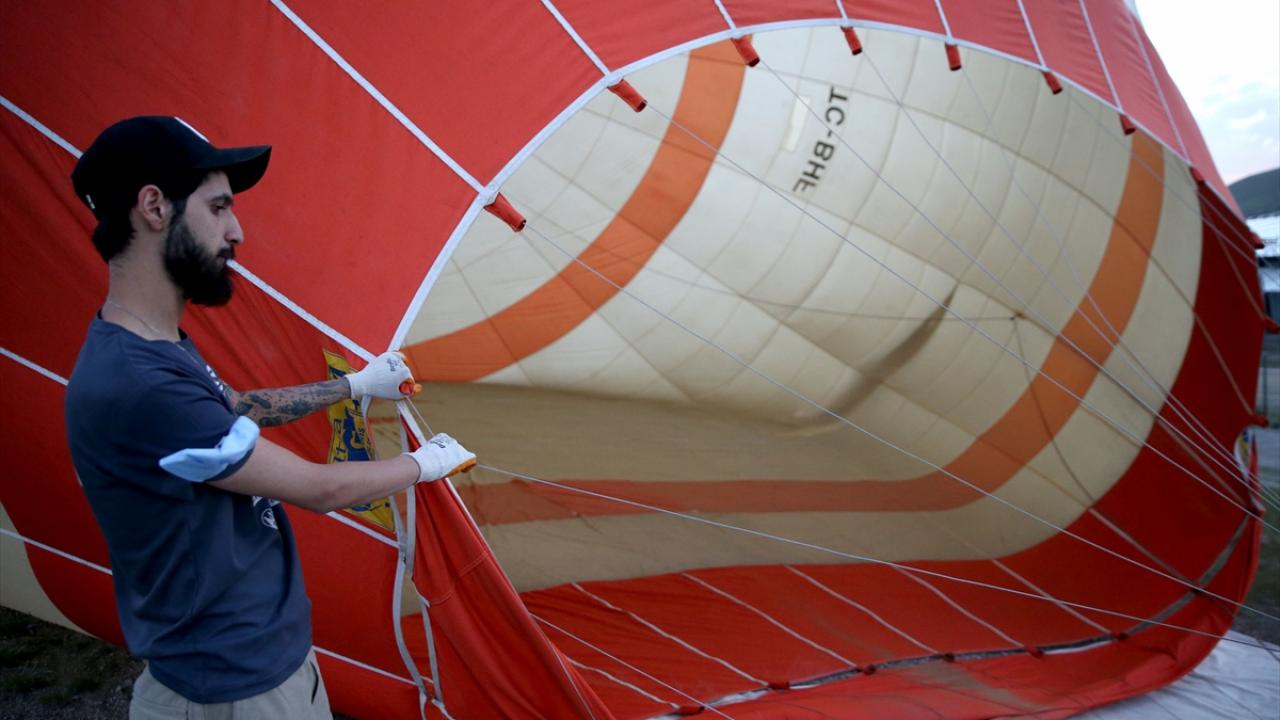 64K etabının start noktasında yere sabit şekilde sıcak hava balonu şişirildi.
