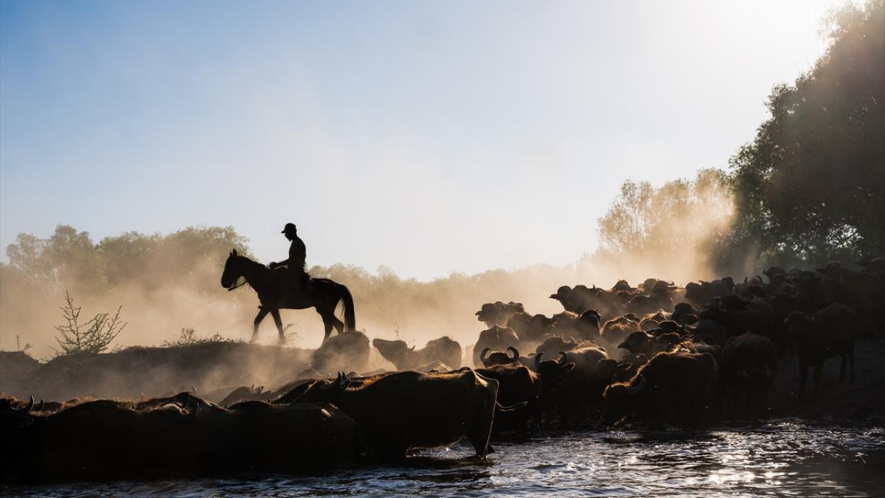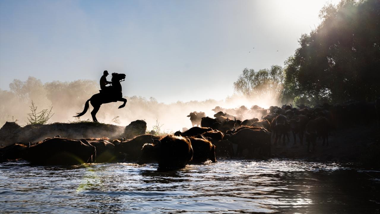Dokuzpınar`a ait yaklaşık 500 mandanın su içindeki görüntüsü ve manda sürüsünün güneşin batışında kaldırdığı tozun içindeki sunduğu görsel şölenle, insanları büyülüyor.