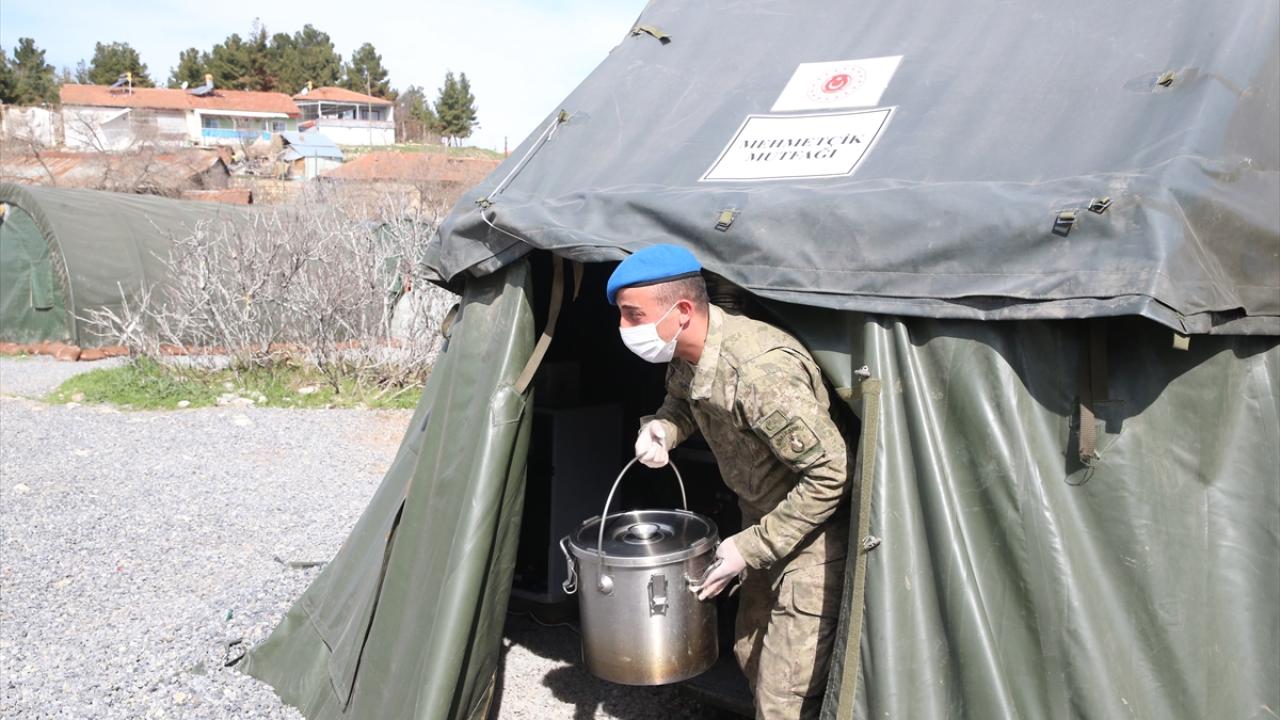 Depremzedeler için gece gündüz çalışan komandolar, ilçede vatandaşlar için kurdukları mobil fırında günlük 800 kişiye ekmek yapıyor, mutfaklarında ise 3 çeşit yemek çıkarırken, haftada 2 gün de simit hazırlıyor.