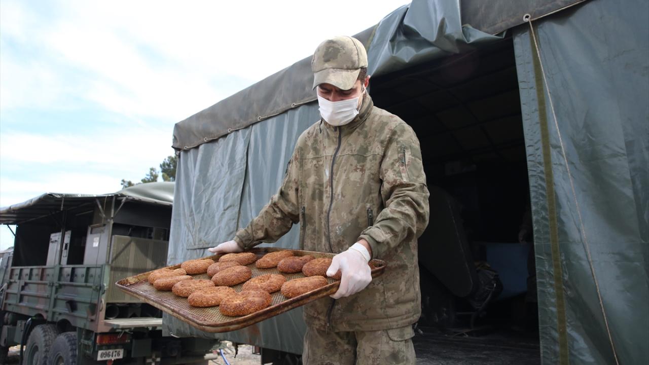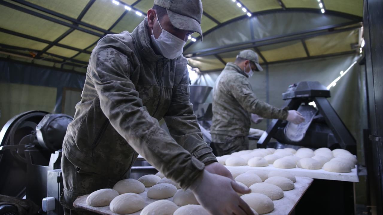 Taze simit ve ekmek üretimi yapan fırında ise geleneksel hale gelen ramazan pidesini üreten Mehmetçik, ay boyunca üretecekleri ramazan pidesini depremzedelere dağıtacak.