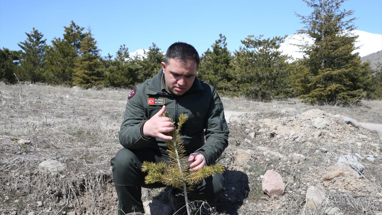 Dikim yapılacak bölge ve türleri önceden belirlediklerini anlatan Biberci, "Burada soğuğa dayanıklı türler seçiyoruz. Yüksek kısımlara soğuğa dayanıklı sarıçam ve huş, alt kısımlara geldikçe karaçam ve sedir dikiyoruz. Bunların yanı sıra badem, mahlep gibi türlerden de dikim yapıyoruz. Bunun da ekosisteme ve yaban hayatına faydası oluyor." diye konuştu.