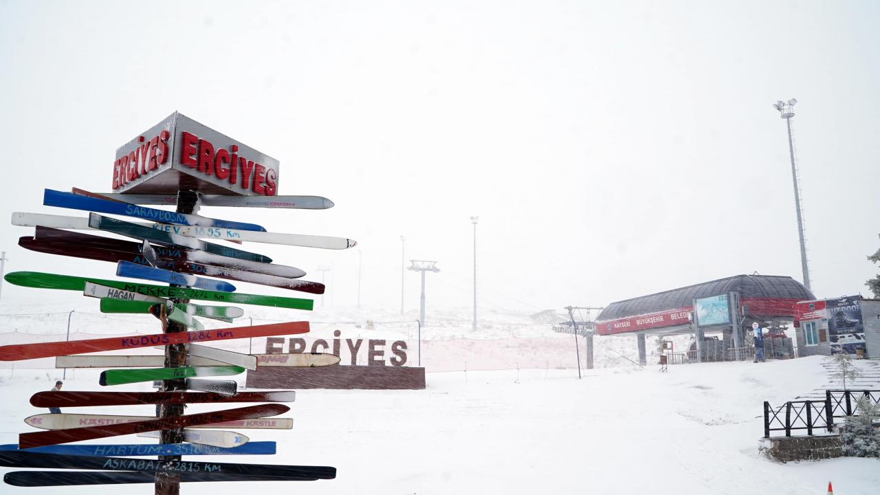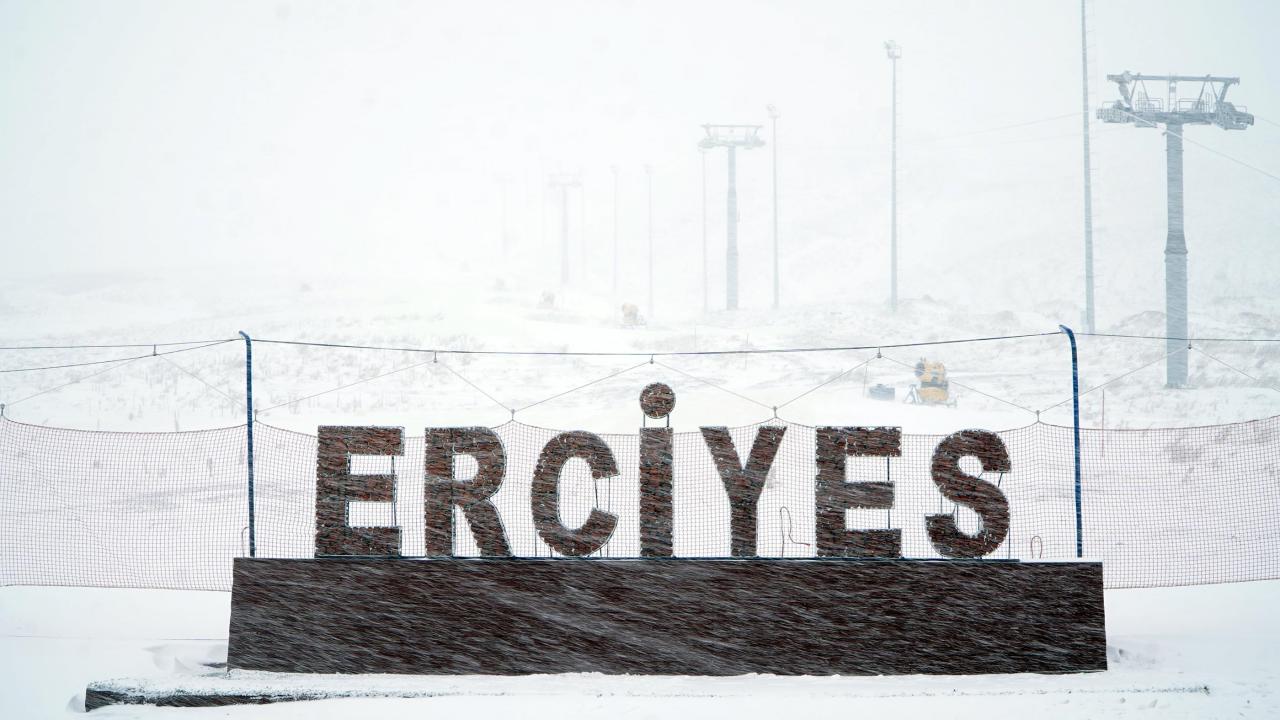 Kar yağışı sonrası Erciyes Kayak Merkezi beyaza büründü.