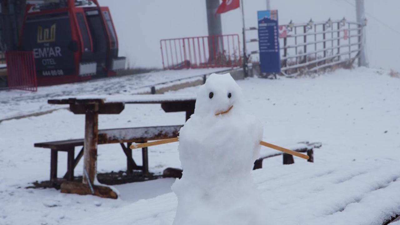 Öte yandan etkili olan kar yağışı sonrasında sezonun ilk kardan adamı da yapıldı.