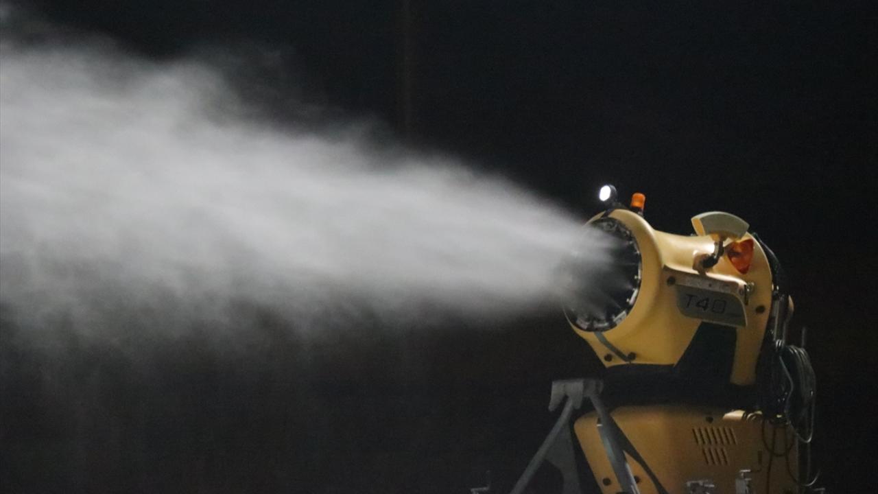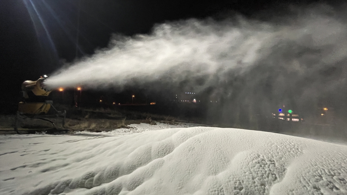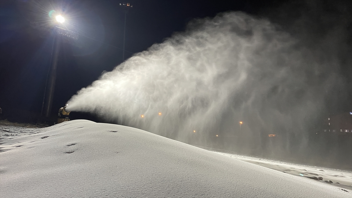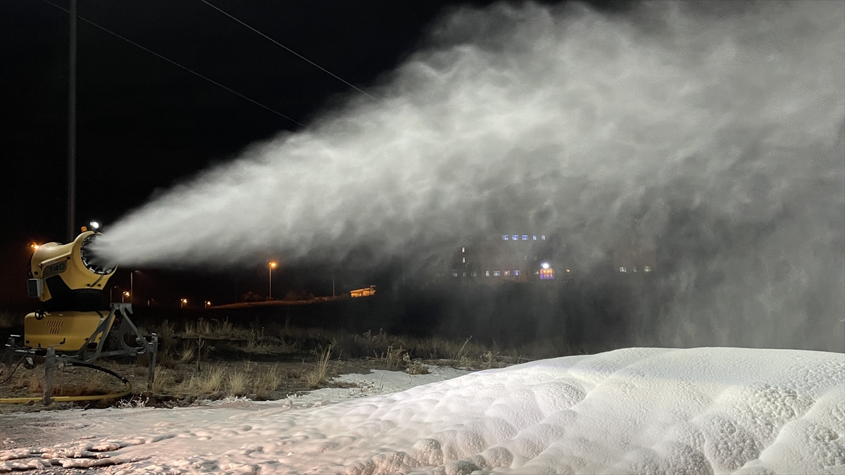 Cıngı, karlama çalışmalarına ilişkin, "Saatte 8 bin 750 metreküp kar üretebiliyoruz. Hacılar ve Tekir kapılarda iki su kaynağımız var. Tekir göletimiz ve Hacılar Kapı`daki suni göletimizden tesisatımızı besliyoruz. Su kaynaklarından aldığımız suların yüksek basınçla havaya püskürtülmesi neticesinde kar oluşumu sağlanıyor." bilgisini verdi.