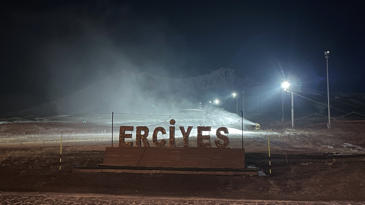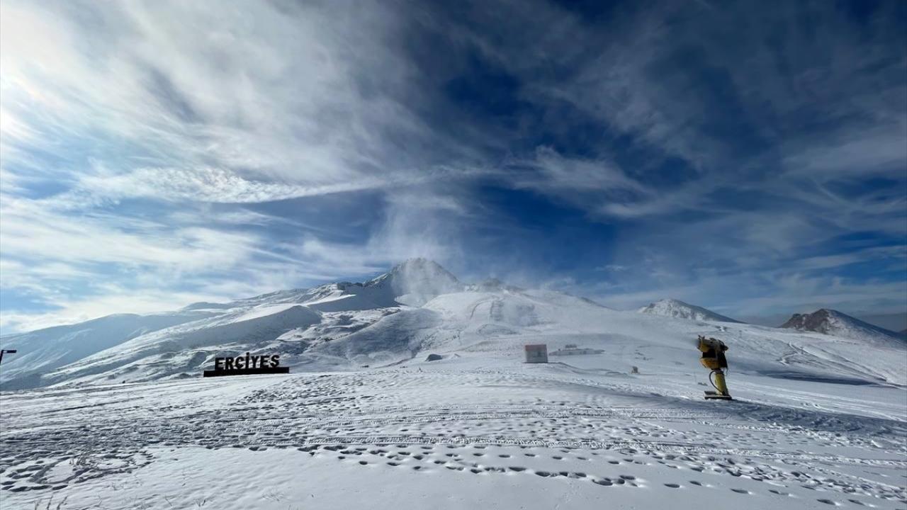 İç Anadolu'nun 3 bin 917 rakımlı en yüksek dağı olan Erciyes'te, yetersiz yağış nedeniyle kayak pistleri için saatte 8 bin 750 metreküp suni kar üretiliyor.