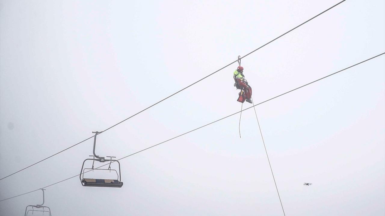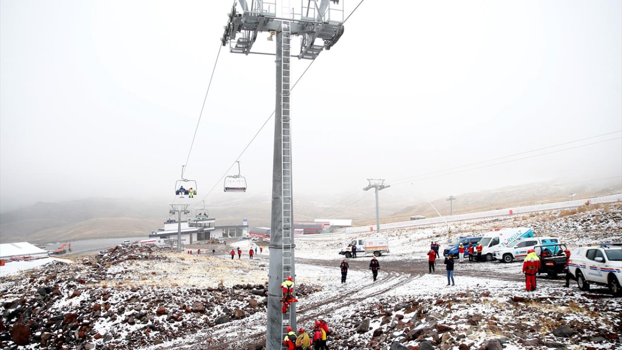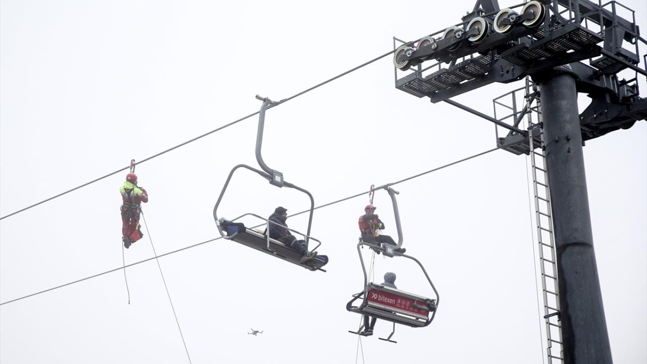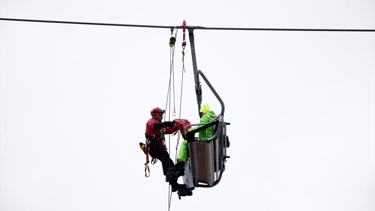 Tatbikatta senaryo gereği, tesislerde çıkan arıza nedeniyle 2 bin 400 metre rakımdaki telesiyejde mahsur kalan 6 kişi, ekipler tarafından halat yardımıyla indirildi. Teknik arıza da ekipler tarafından kısa sürede giderildi. Yaklaşık bir saat süren tatbikatta 60 kişi görev aldı.