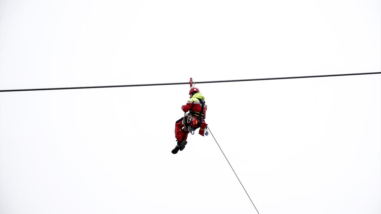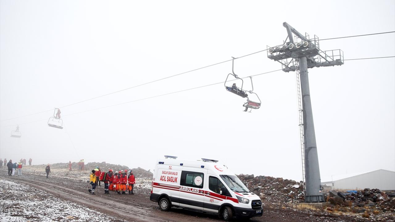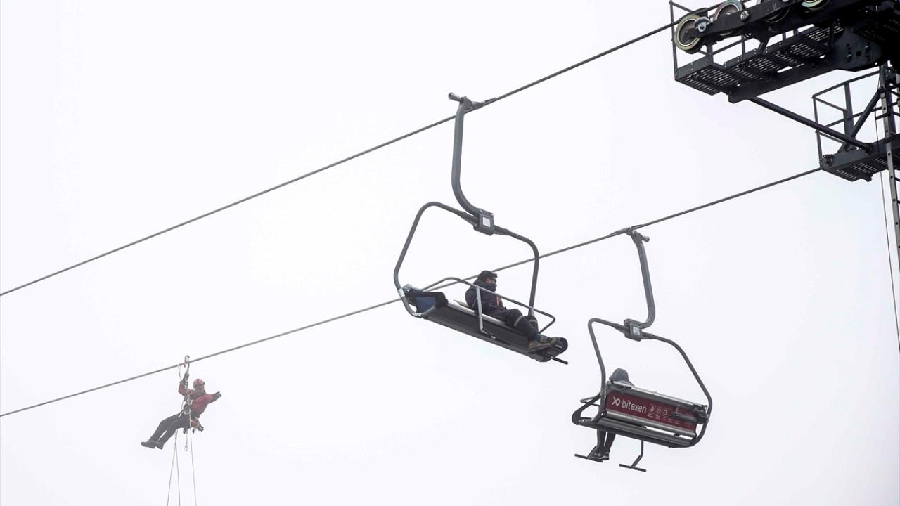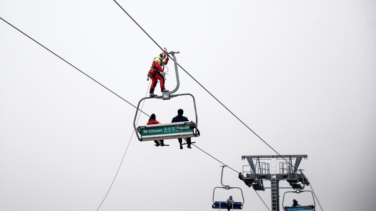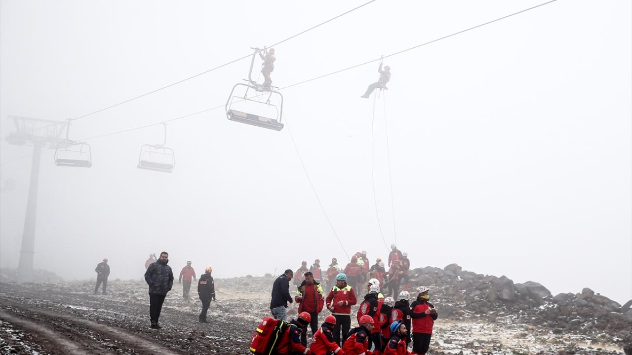 Tatbikatta senaryo gereği, tesislerde çıkan arıza nedeniyle 2 bin 400 metre rakımdaki telesiyejde mahsur kalan 6 kişi, ekipler tarafından halat yardımıyla indirildi. Teknik arıza da ekipler tarafından kısa sürede giderildi. Yaklaşık bir saat süren tatbikatta 60 kişi görev aldı.