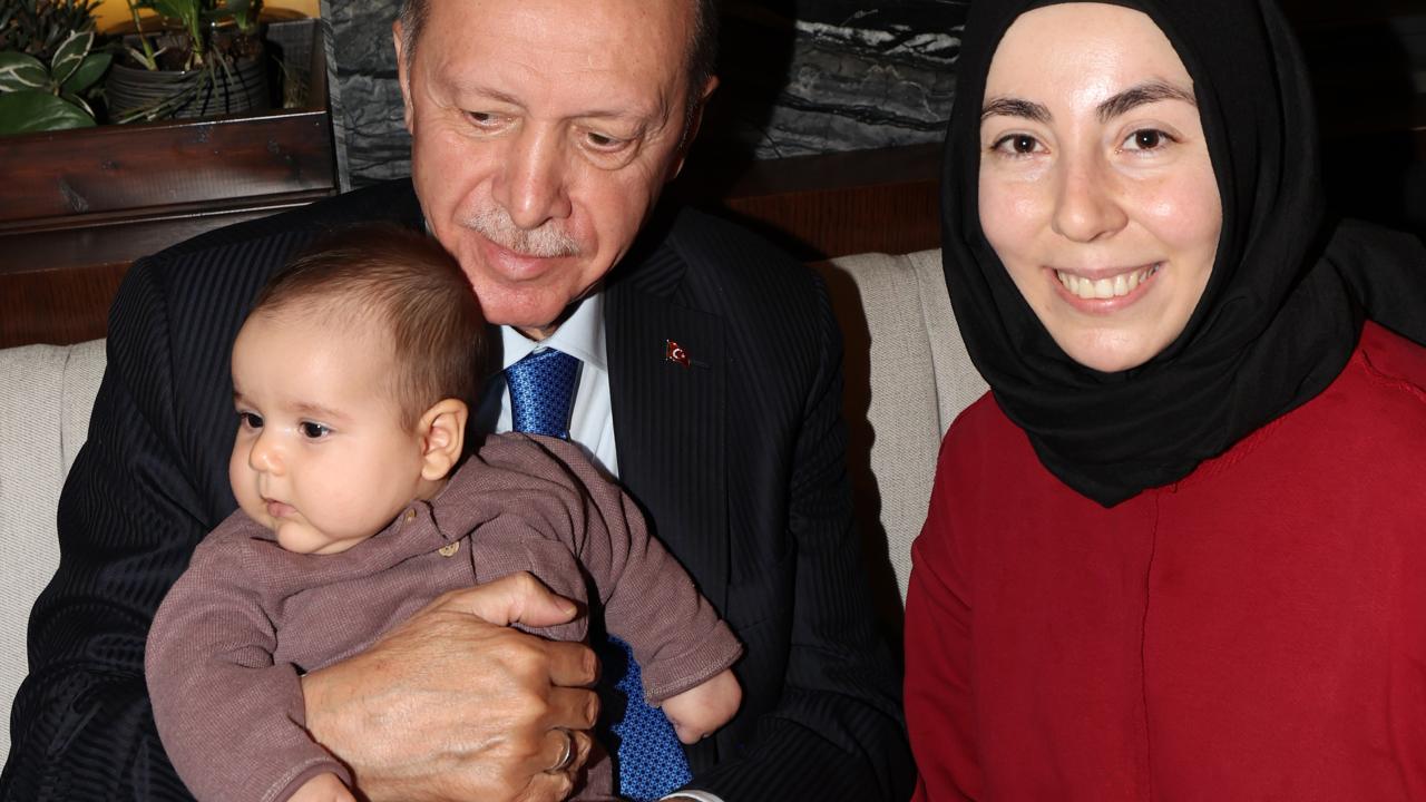 Kafede bulunan küçük çocuklar ile yakından ilgilenen Erdoğan, vatandaşlarla fotoğraf çektirdi.