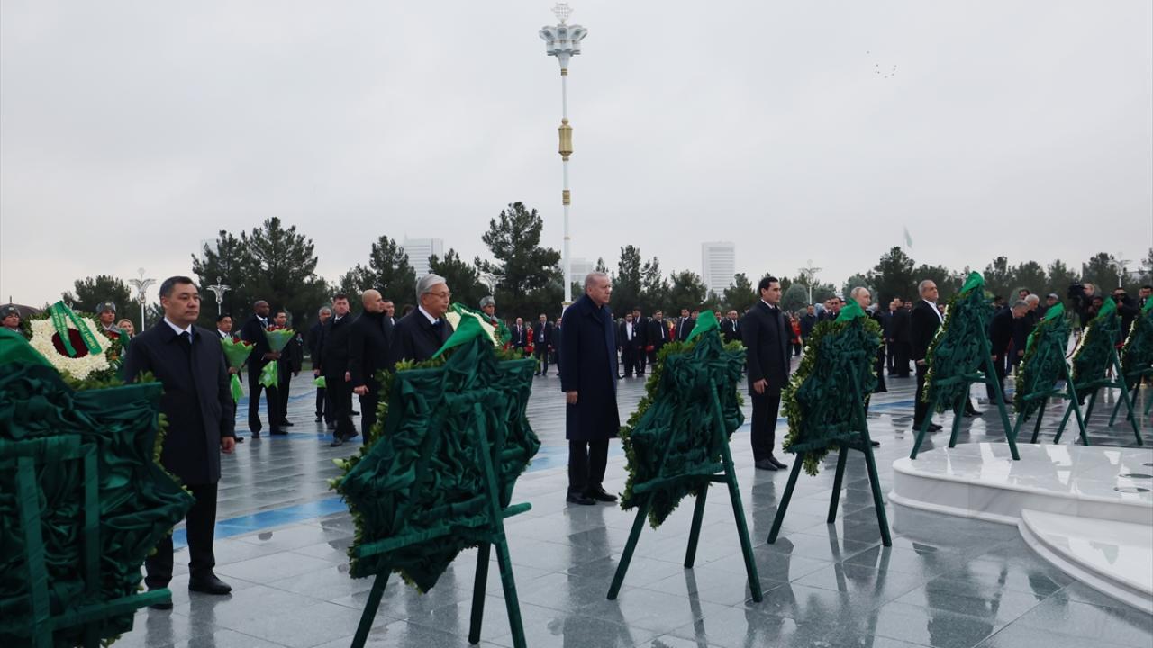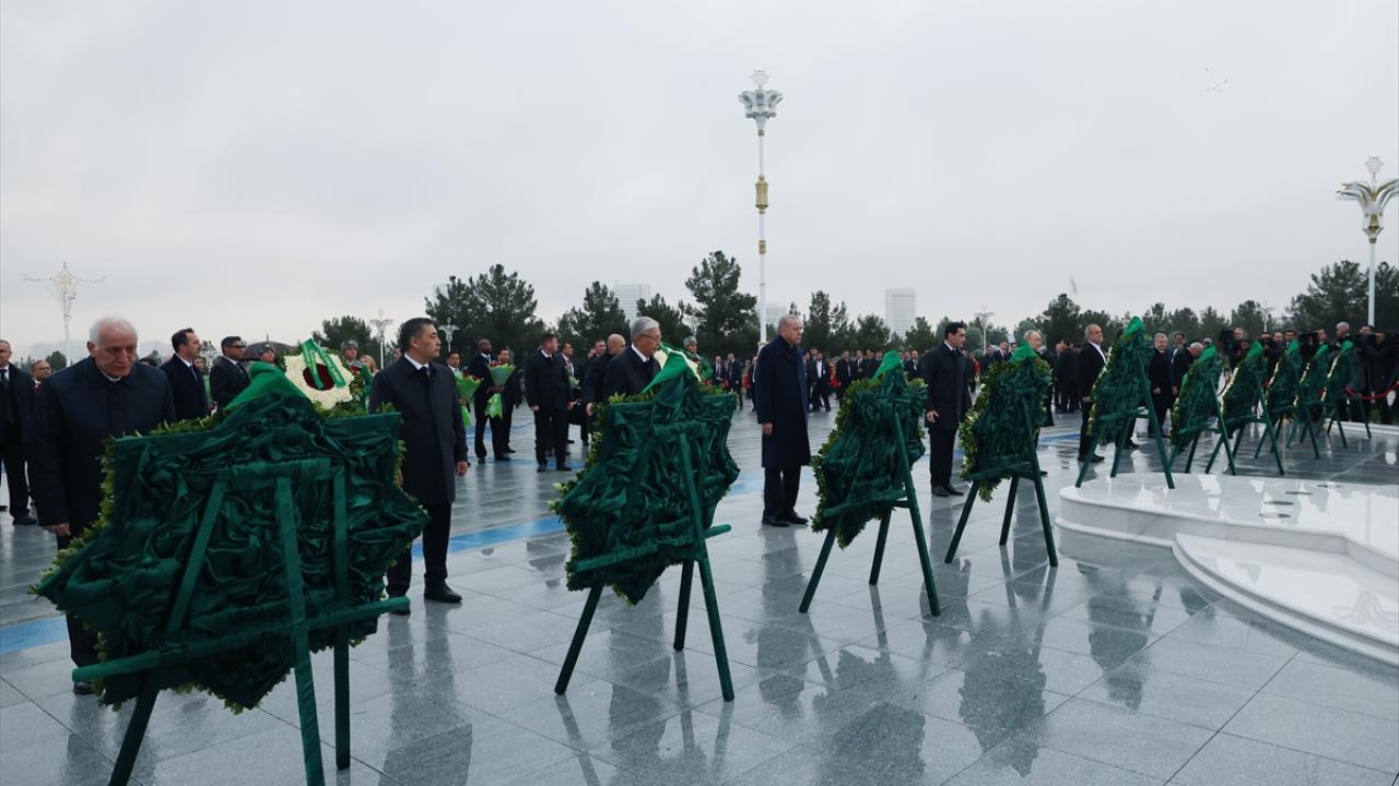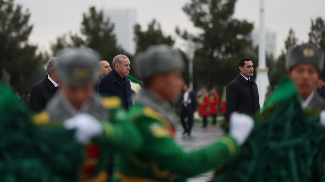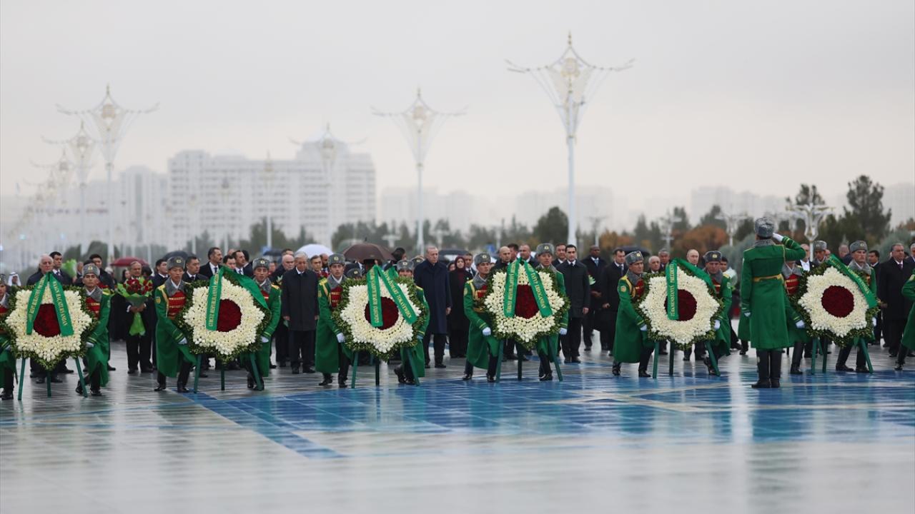Cumhurbaşkanı Erdoğan, Uluslararası Barış ve Güven Forumu`na katılmak üzere geldiği Türkmenistan`ın başkenti Aşkabat`ta, aralarında Rusya Devlet Başkanı Vladimir Putin ve İran Cumhurbaşkanı Mesud Pezeşkiyan`ın da olduğu davetli devlet başkanları ve hükümet başkanlarıyla Tarafsızlık Anıtı`na çelenk koyma törenine iştirak etti.